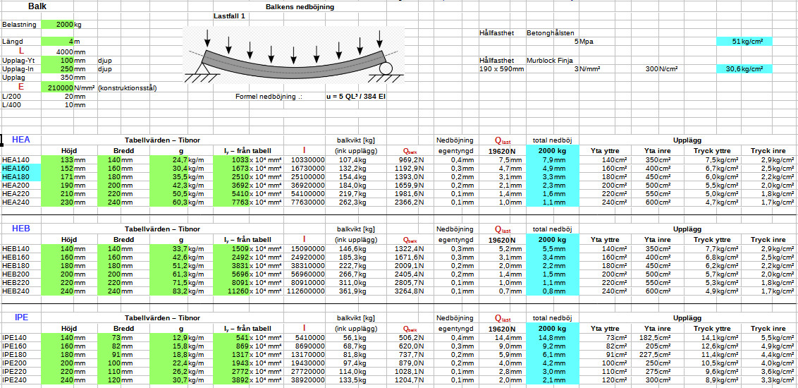 Järnbalk HEA / HEB / IPE under utbyggnad - dimensioneringshjälp