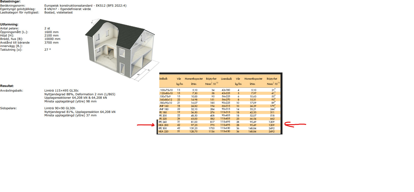 Hej Hoppas ni kan hjälpa mig att beräkna denna HEB200 balk jag tänker nyttja som avlastning vid borttagning av vägg.