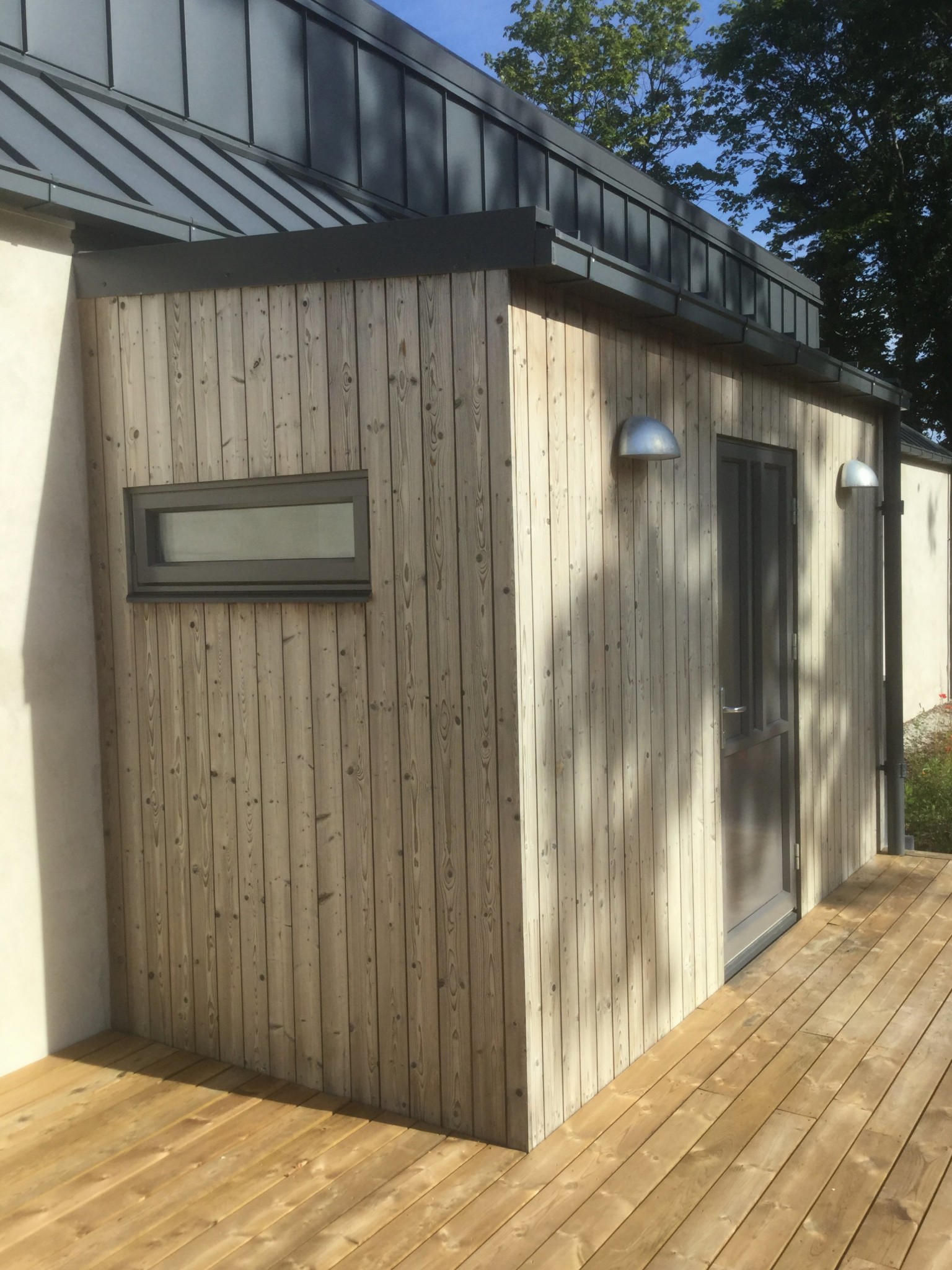 Min chef bygger just nu ett hus på västkusten vid havet med sibirisk lärk som är behandlad med järnvitriol.