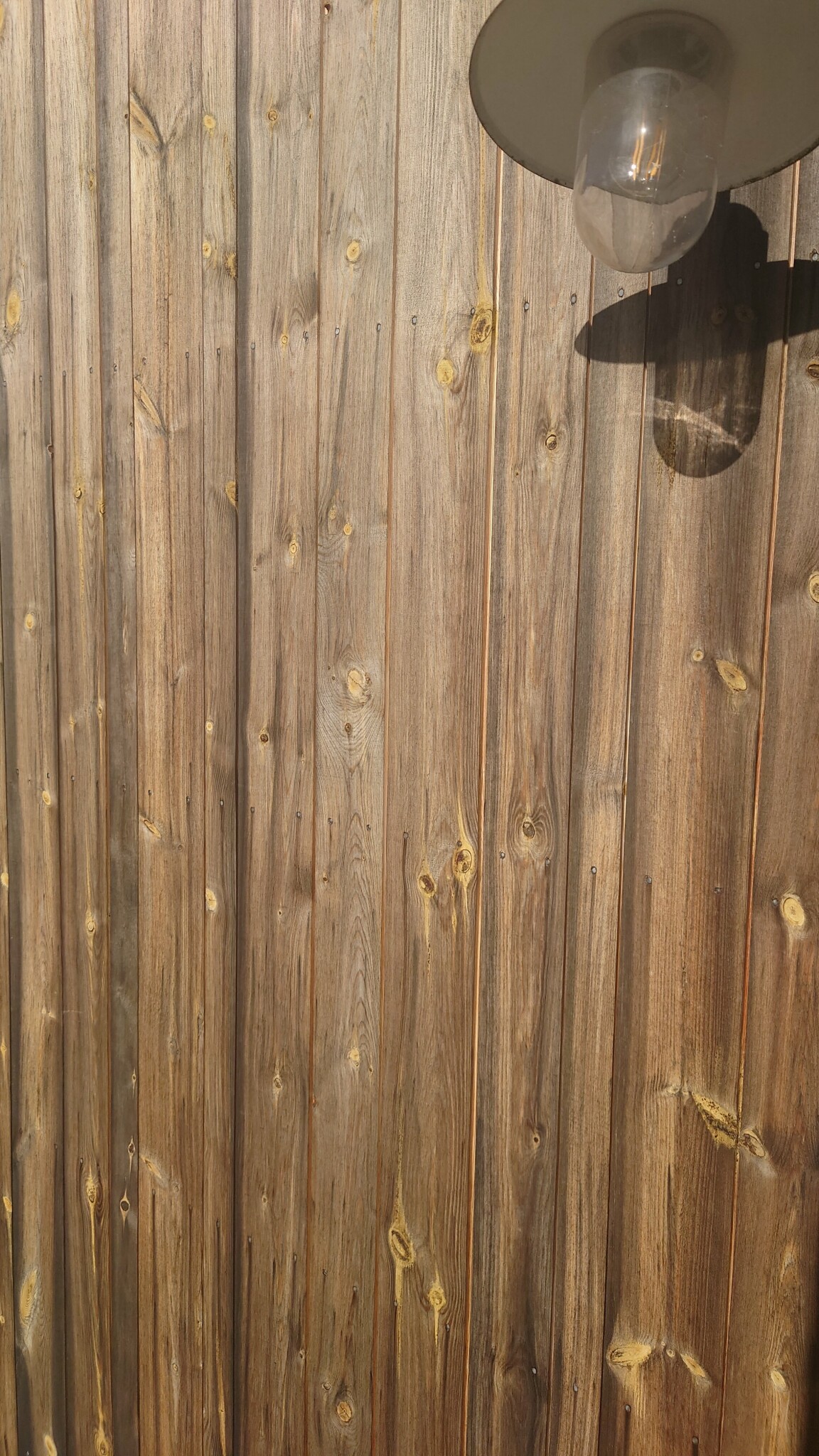 Vi köpte 20 liters spannar sprutbar tjärvitriol från Auson via Beijer bygg. Det gick åt mer men det va jäkligt smidigt att spruta på det och sen gå över det med en pensel. Detta gjorde vi innan vi satte upp panelen.