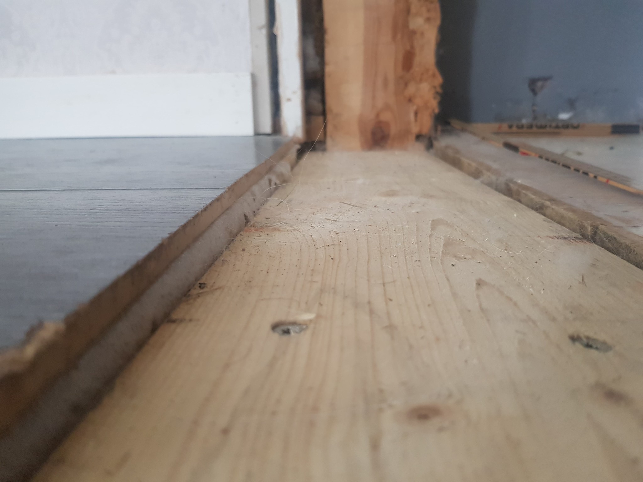 Du kan behöva fräsa eller hyvla så den ligger plant om det är höjdskillnader mellan golven.