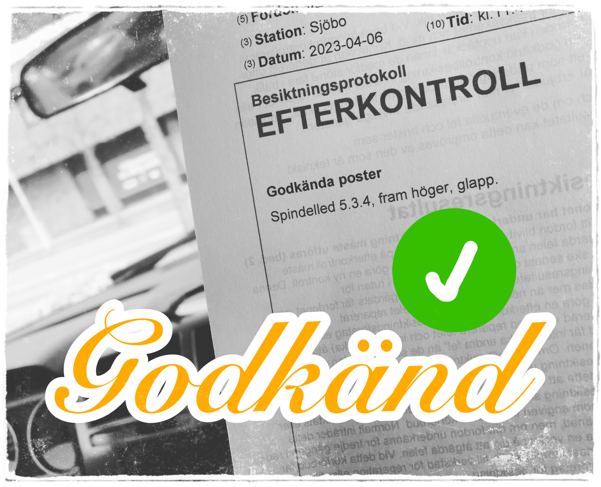 Maken hade fått fästa spindelleden på annat vis (och jag frågade inte hur, så länge den satt så det var ok.. och inte lät som bilen skulle gå sönder).