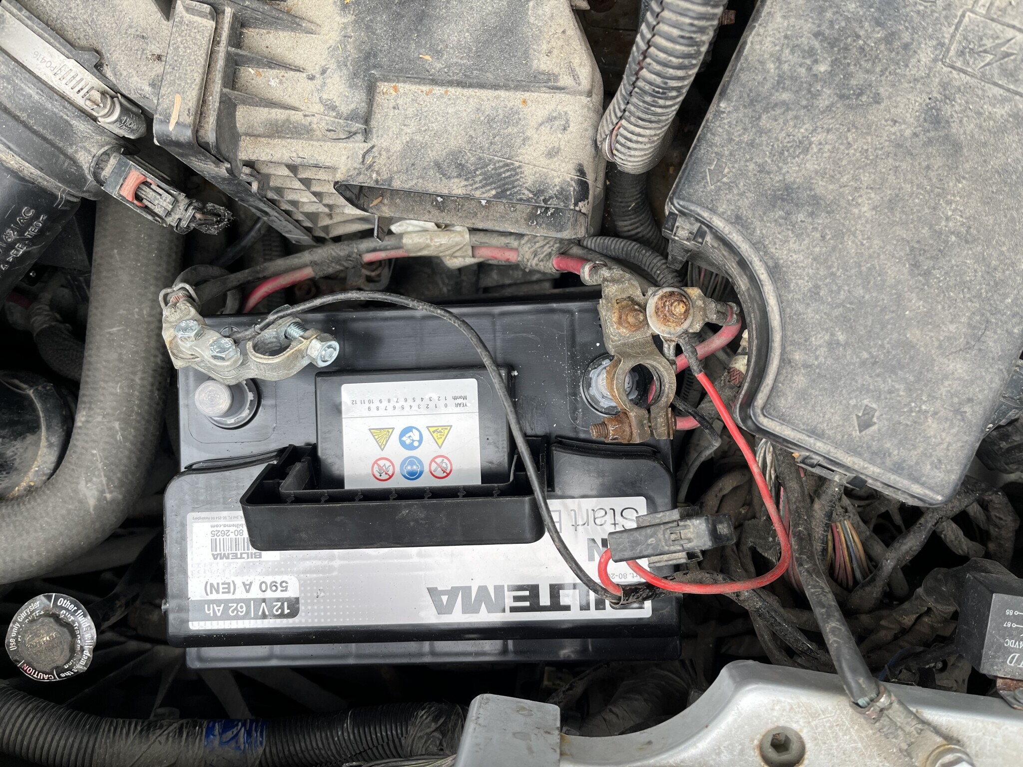 Kan nämnas att vi köpte ett rekommenderat batteri.. och vi vet inget om bilbatterier eg.. MEN vad vi noterat är att på det gamla batteriet.. så sitter polerna i "bakkant"... och på det nya batteriet i "framkant" .. och den skillnaden verkade räcka för att man inte ska nå polerna med klämmorna.. 😳 (varför gör man sladdarna så extremt korta/tajta?)