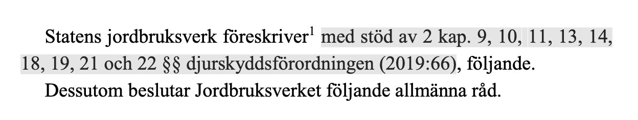 Men Jordbruksverket har rätt att utförda föreskrifter i frågan. De är en myndighet så dessa föreskrifter är inte en politisk fråga i egentlig mening. Förvisso och som jag beskrev ovan så bygger hela systemet på att myndigheten har löpande dialog med regeringens folk, formellt är det bara information/dialog i frågan men man har vanligen känslospröten långt ute - det är ju regeringen som är ens uppdragsgivare och som styr riket.