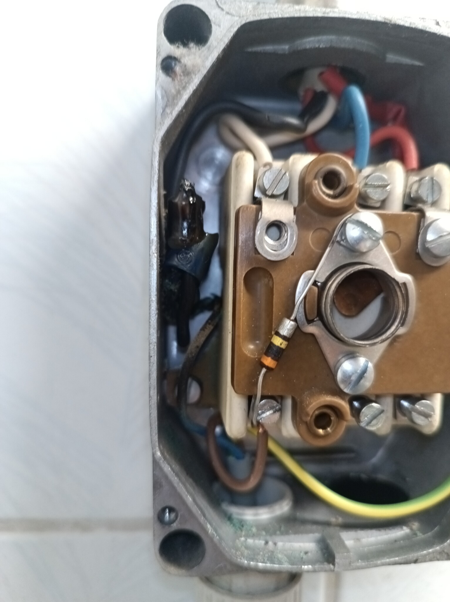En omisskännlig doftade av smält plast mötte mig när jag lyfte på locket på brytaren. Här kan man kanske misstänka något... 🤔
