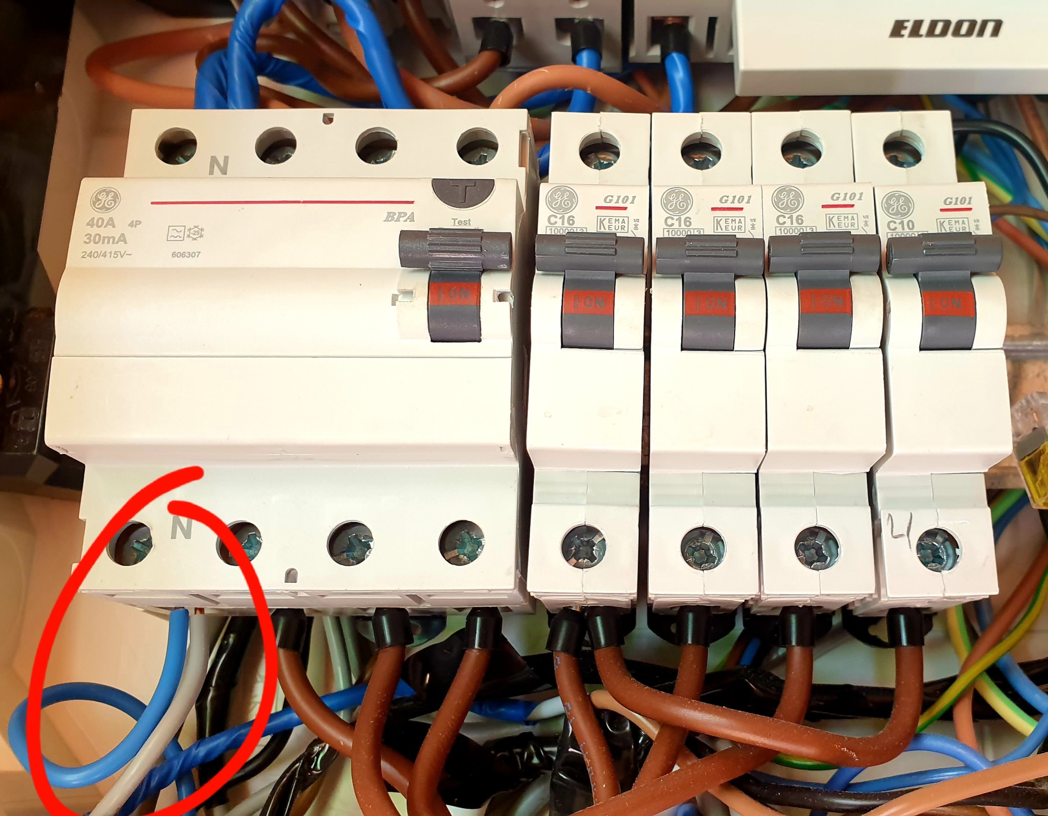 Gör man inte så, utan kopplar en neutralledare som hör till "fel" jordfelabrytare till den enda neutralplinten. Så kommer det inte att fungera. Man brukar ha två separata neutralskenor/plintar om man har två jordfelsbrytare.