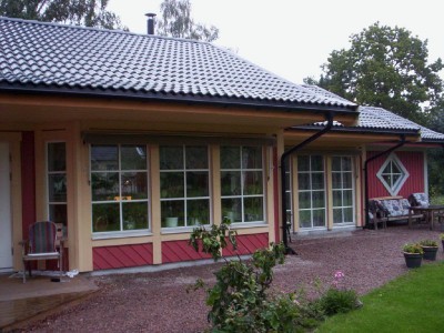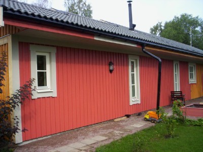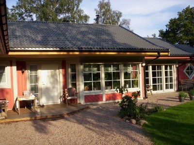 Utebelysningen består av 10 st lågenergilampor som styrs av ett skymningsrelä.