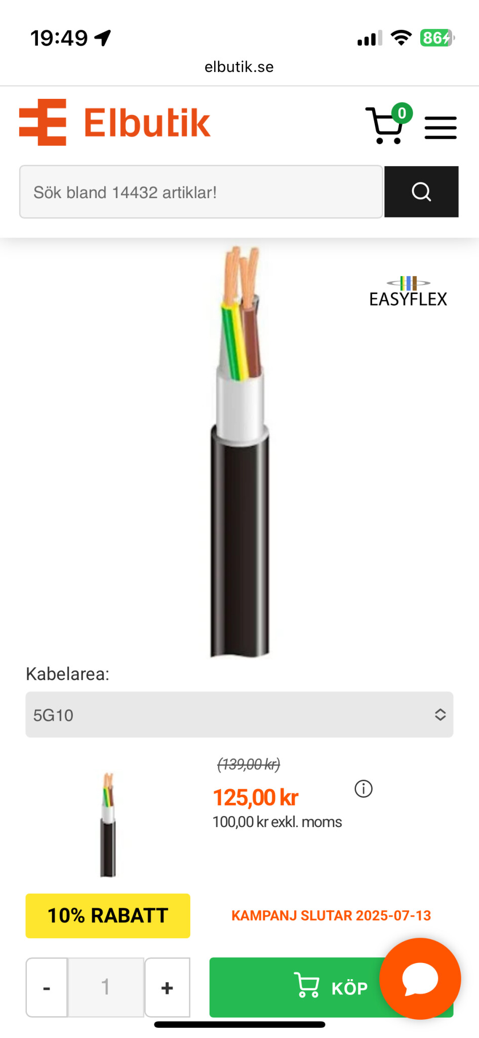 Tack. Vore intressant och veta vad ett mer känt märke 5G10 som exempelvis Draka/Nexans.. Lite tveksam att köpa från märken jag inte känner till eller ”kända” märken så att säga. Men det kanske ligger även där i 170 kronors spannet.Totte_S skrev: