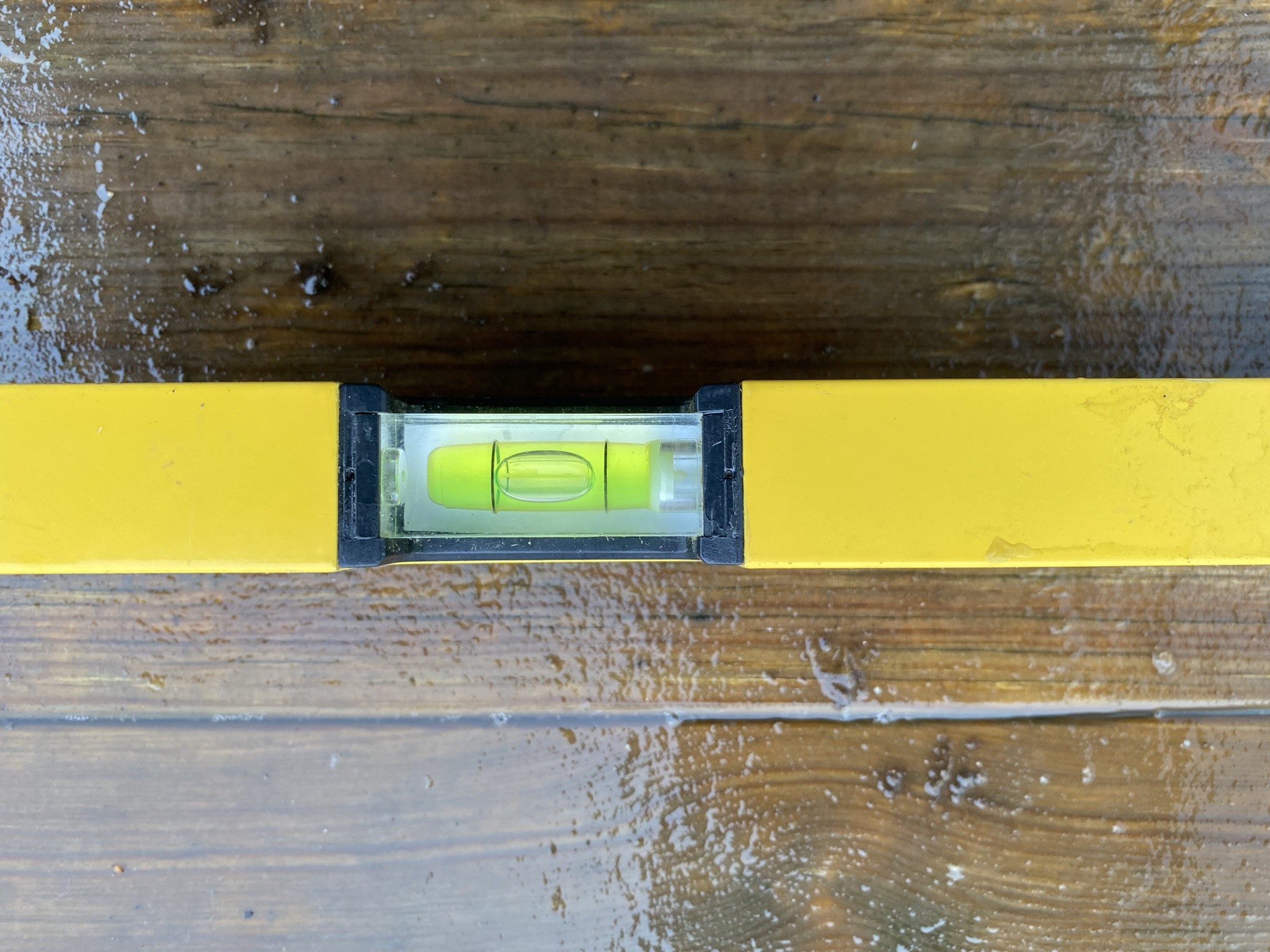 Du kan också helt enkelt palla under med trä om du inte väger in plattorna på rätt höjd. Vinsten mot att sätta en stötta och skruva är att den inte hänger i skruvarna.