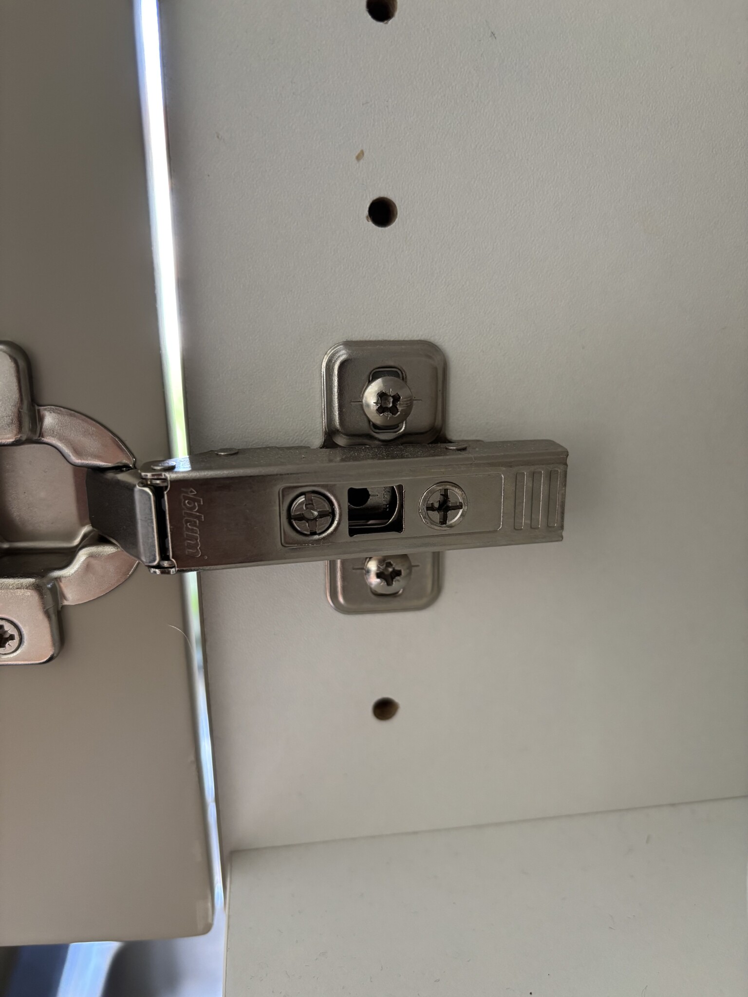 Vi har ett äldre IKEA-kök, tror modell Faktum, och skulle behöver justera köksluckornas höjd. På gångjärnen finns det dock bara två skruvar som justerar i sidled och ut och in. På andra gångjärn finns det en tredje skruv i mitten som man kan justera höjden på luckorna med.