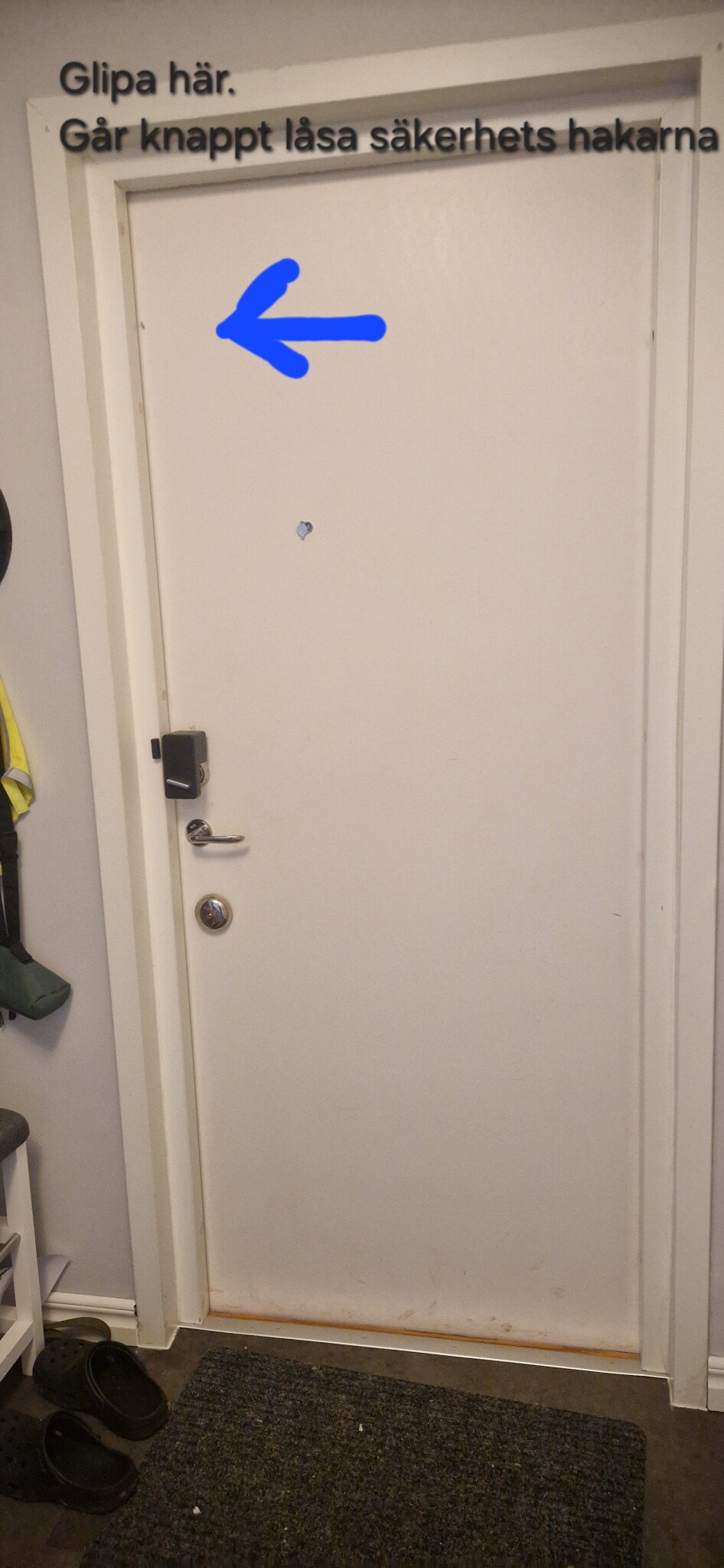 Det är några mm glipa där och säkerhets hakarna har svårt att gå i om jag inte pressar dörren inåt samtidigt jag låser.