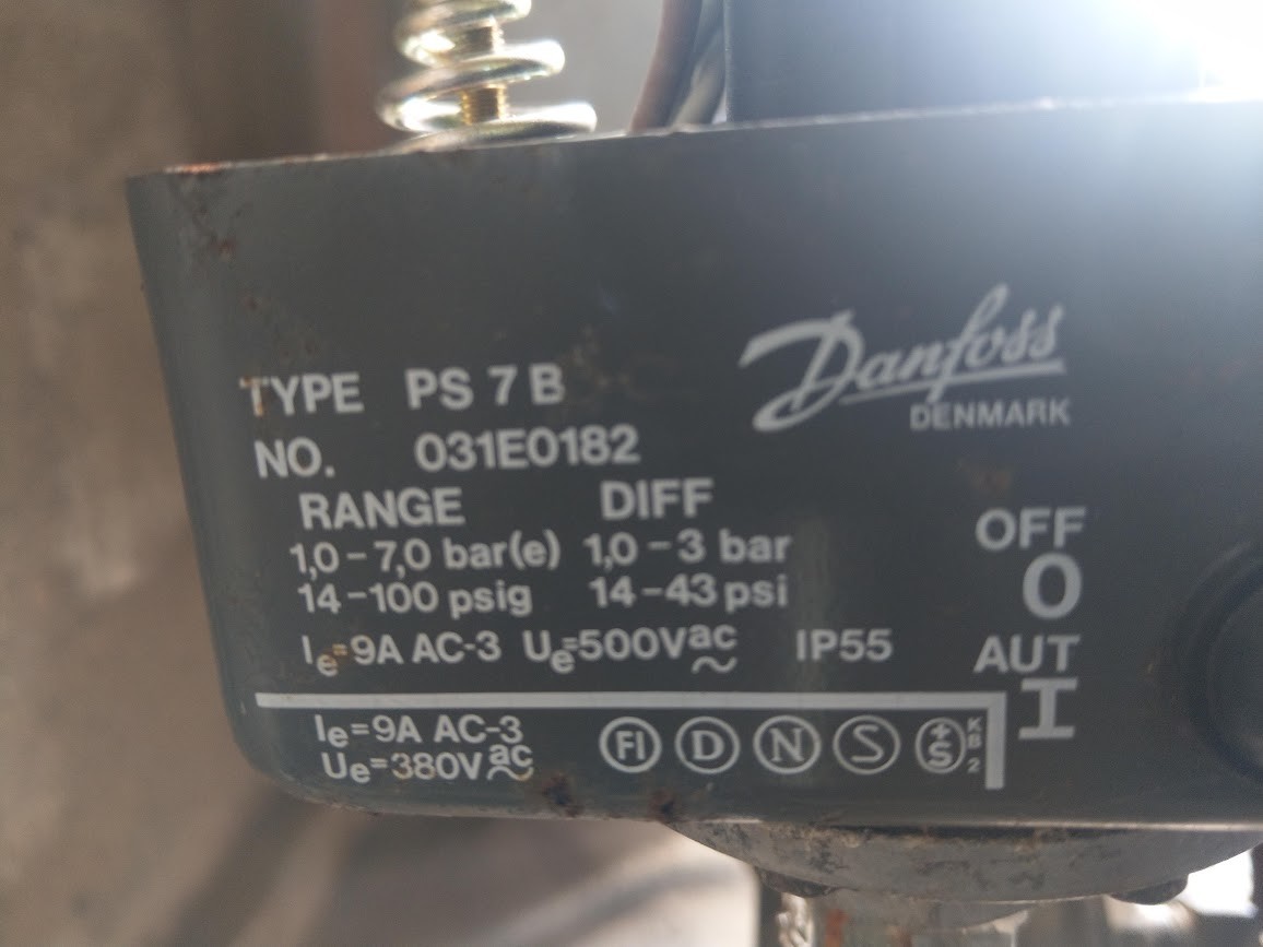 Jag har en tryckströmbrytare av märket Danfoss och typen PS 7 B.