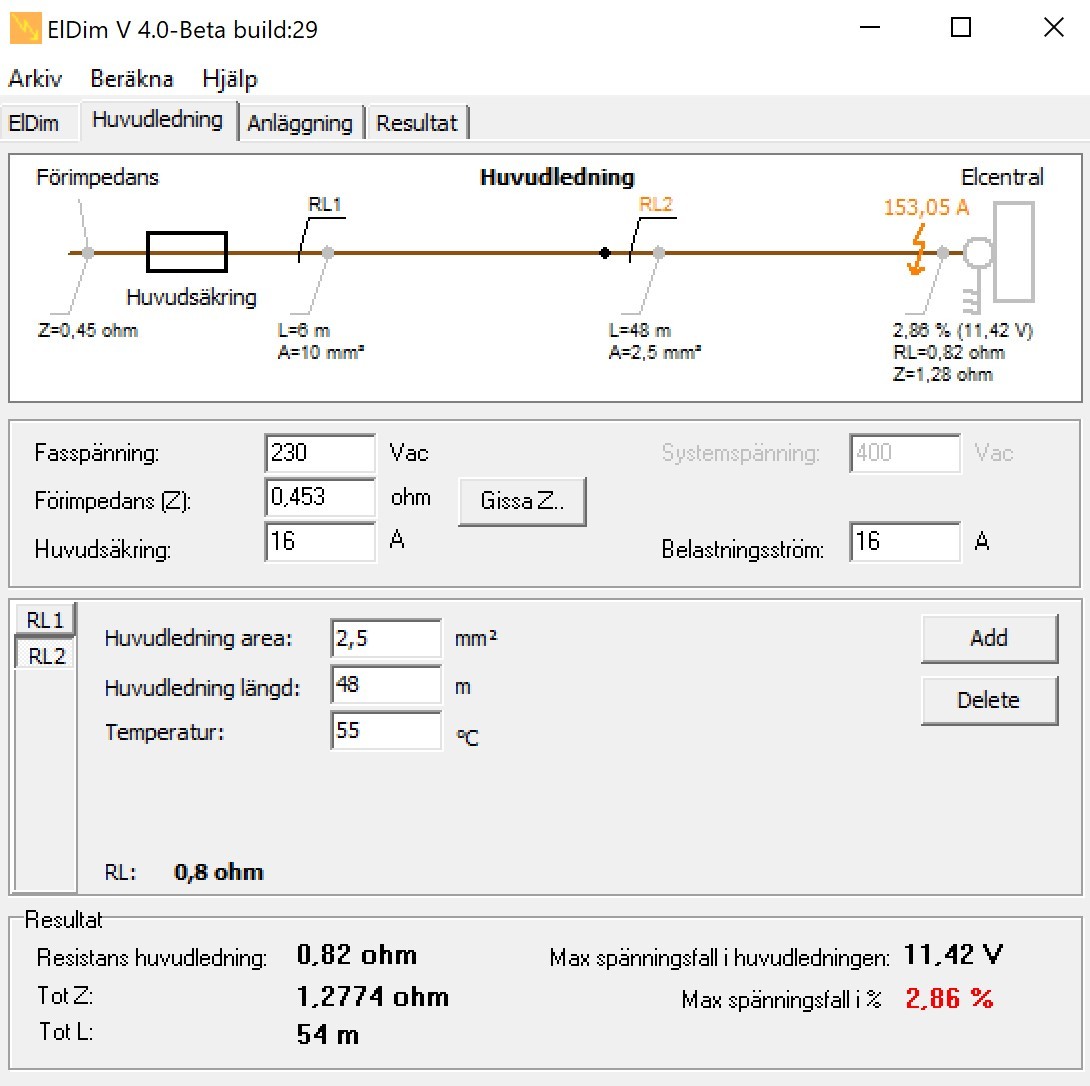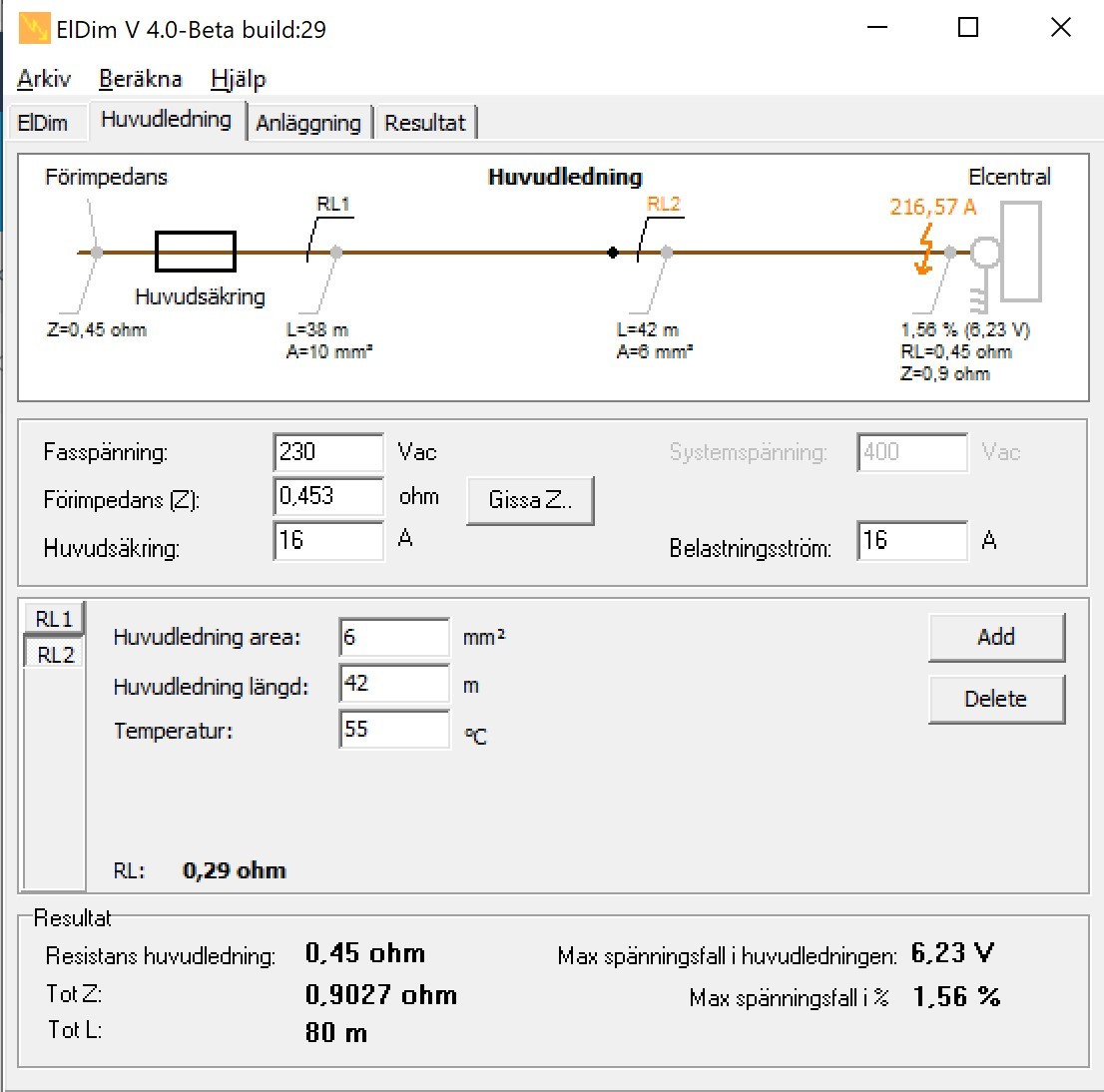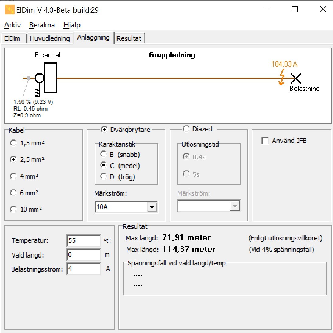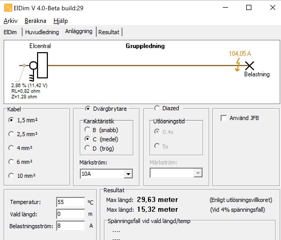 Nu har jag gjort lite mätningar och beräkningar med ElDim.