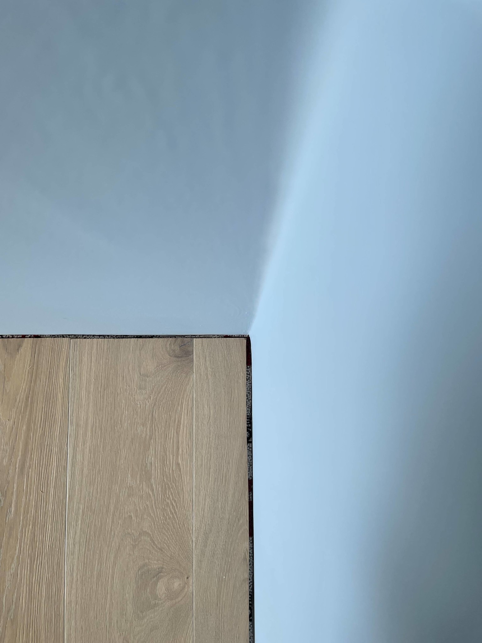 Det ena rummet är 4 x 3 meter och det andra är 4 x 2,3 meter. Det större rummet har skarvar och det lilla rummet har inga skarvar då en hel bräda (2,44m) fick plats.