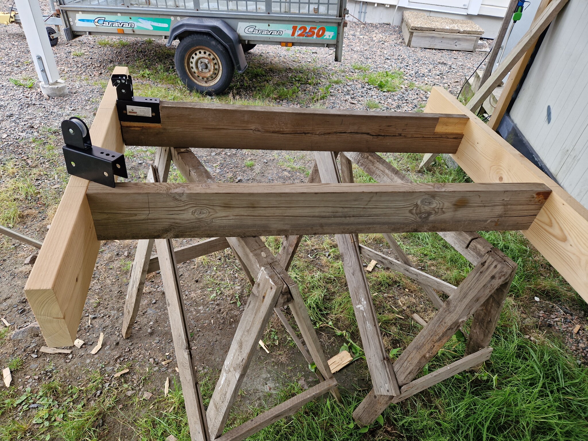 Jag började med att mäta avståndet mellan takstolarna (eftersom det är mot sista takstol så är det inte samma cc mått som övriga). Byggde därefter en ram att srkuva fast i taket