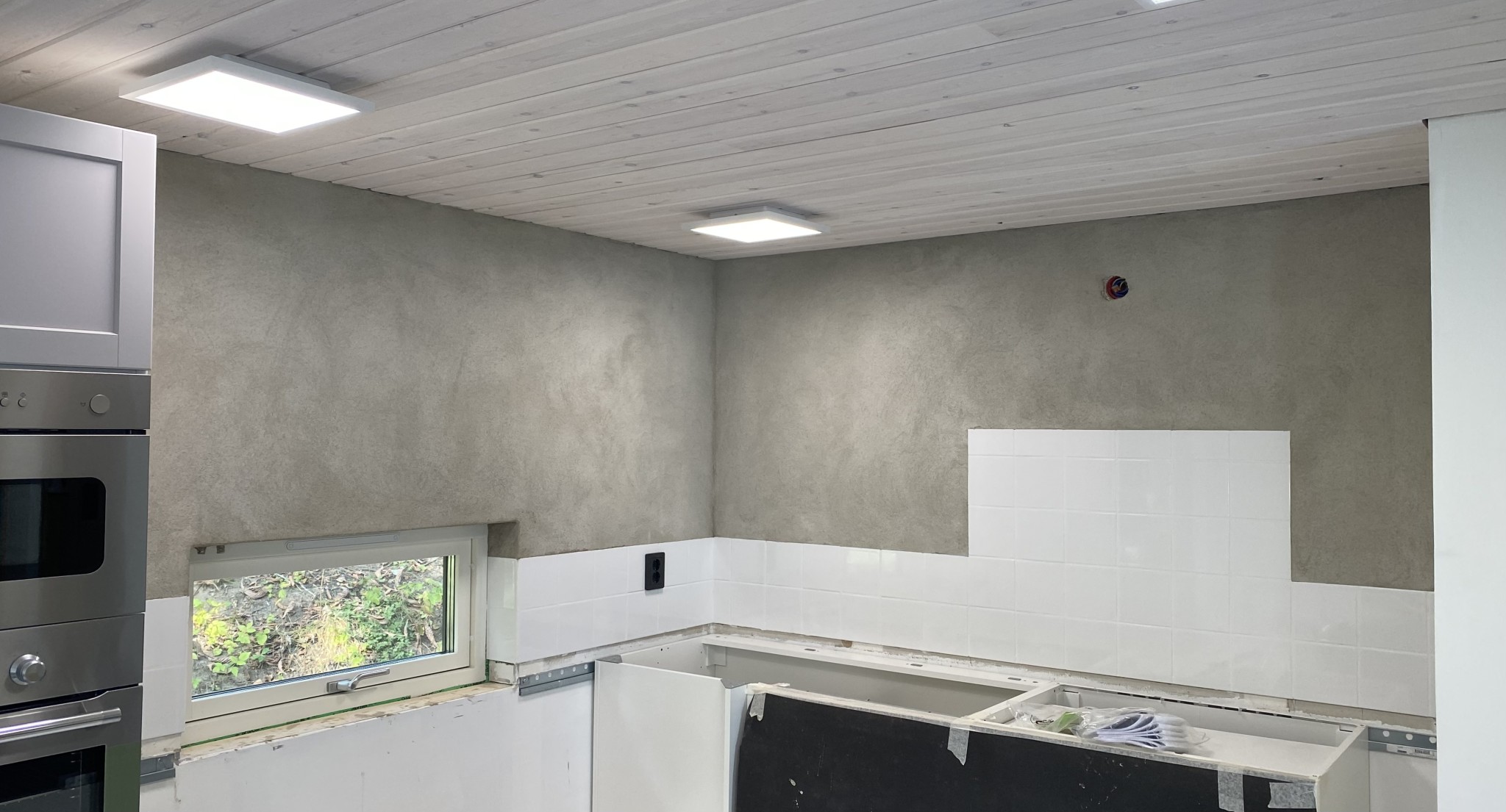 Ska ha ~2,5st 15cm kakel längst hela köksbänken mot väggen och i höjd med kaklet kommer jag sätta en 13mm gipsskiva.