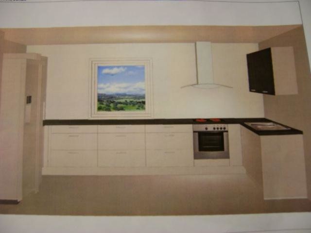 Vårat problem är nu om vi bara skall sätta kakel över diskbänk och fortsätta upp hela vägen till tak vid fläkten, eller om vi måste köra på vidare med kakel till vänster förbi ett fönster och hela den väggen oxå. Kolla in bilden(ritningen) så förstår ni säkert vart jag menar.