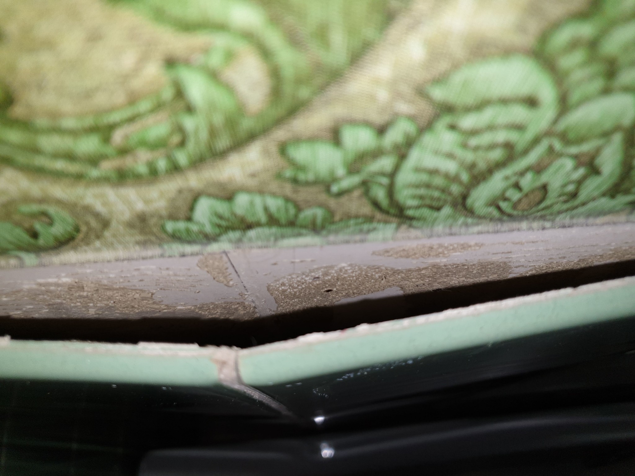 Underlaget ser ut som Spånskiva så det är egentligen inte konstigt att det rör sig och släpper. Mer imponerande att det hållit sig fräscht så pass länge.