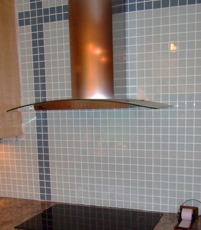 Min tanke just nu är att "kalka" i glasmosaik 4,5x4,5 cm. Och då menar jag Pure glass-moasik som är glasfärgat och där själva färgen ligger på baksidan. Fogas i vitt. Merparten av mosaiken ska vara den vita, men några ränder eller fält ska vara i grått, blått eller grönt. Vi har inte bestämt om vi ska köra blått eller grönt till de grå luckorna.