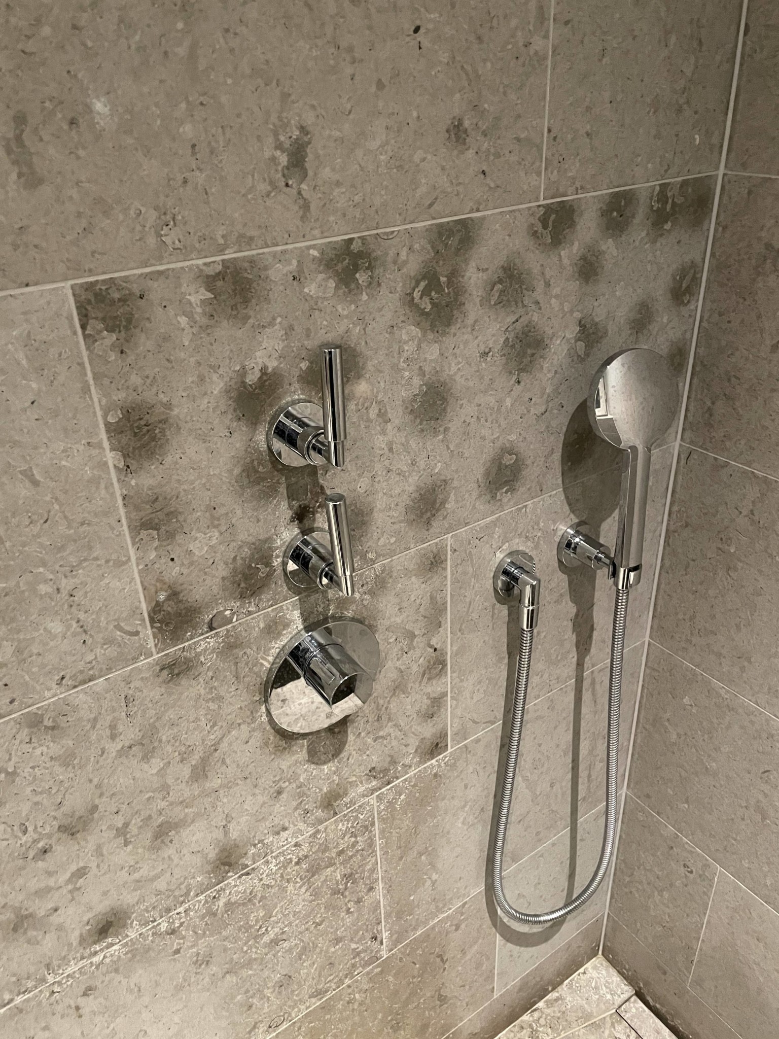 Vi har kalksten i vårt badrum. Efter ett par månader efter inflytt och renovering har vi en massa ringar som vi inte får bort. Se bild!