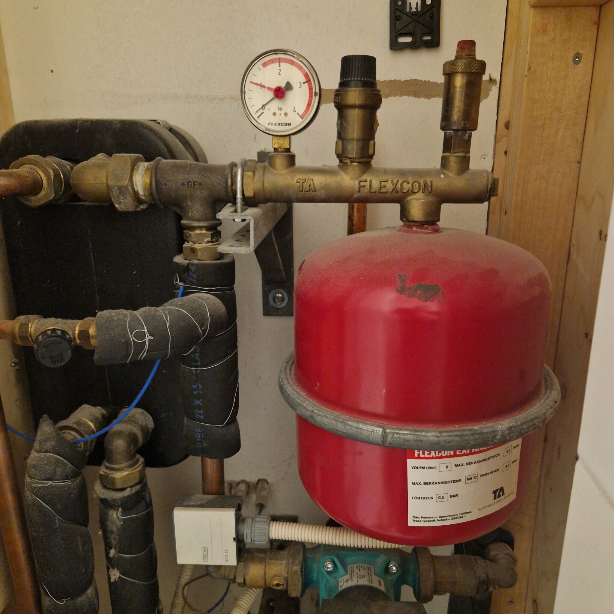 Bör finnas en påfyllningsventil för vatten på samma rörsystem.