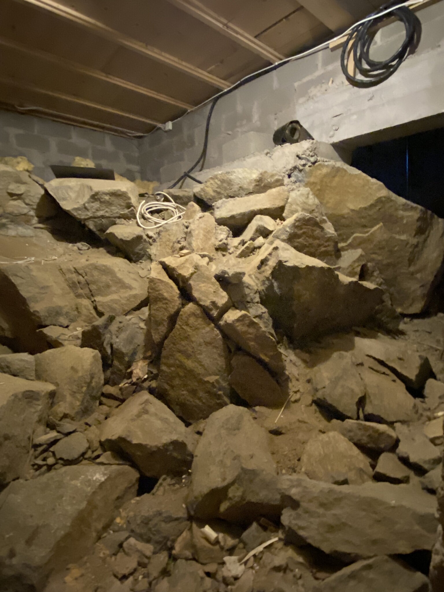 Jag tog hit en firman för 4 år sedan som skulle ha ca 200.000:- för att ta bort berget så det slutade med att detta är vårt vinter-projekt. Med andra ord vi har borrat, kilat och använt snigel dynamit i snart 4 år 😅 även fast vi inte är klara är vi fortfarande nöjda med det beslutet och tiden har även gjort att det framtida badrum som ska vara där ritats om till det bättre. En limträbalk är ditsatt för stabilitet i hjärtväggen.