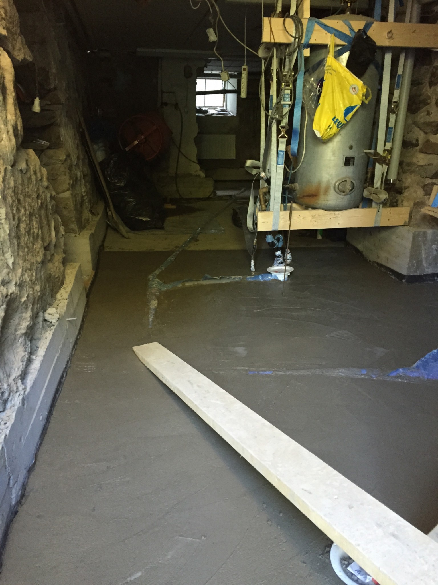 Efter gjutning av golv men innan golvvärme och flytspackel: