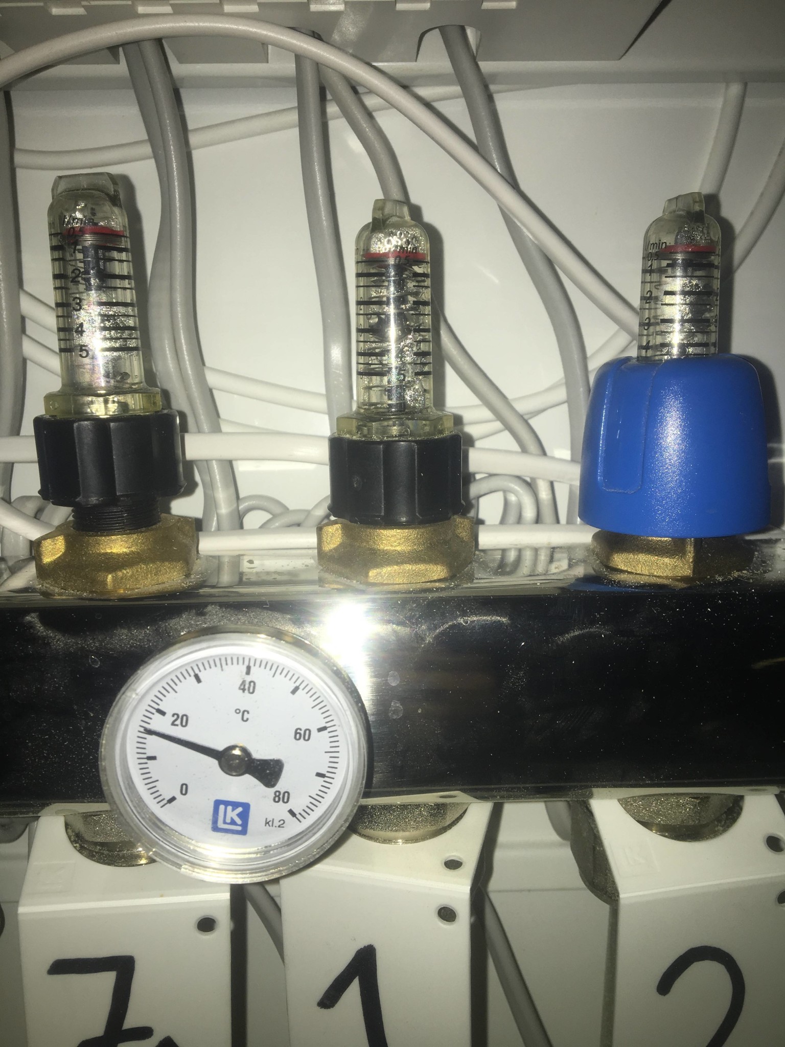 VVS-killen är fortfarande här. Enligt honom har installatören troligen gjort en felaktig inställning på pumpen första gången den startades. Detta resulterar i att växelventilen inte fungerar som den ska och inte öppnar för värme (förutom ibland). Han har även avluftat pump, det röda klotet och vid nedre fördelaren. Han ska ställa in pumpen manuellt så att vi får värme men det verkar gå sådär.