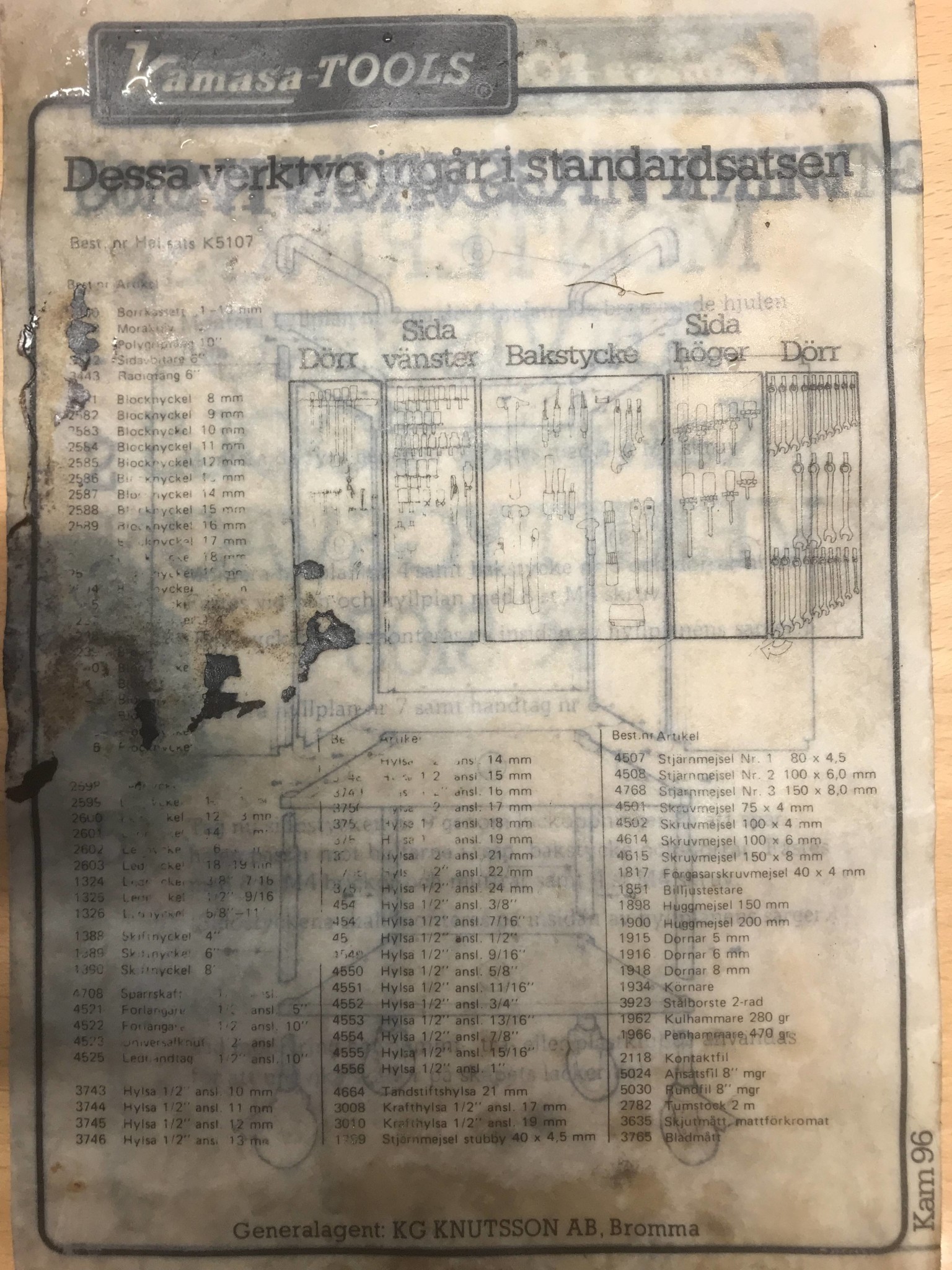 Kamasa-TOOLS verktygsvagn K 5105 monteringsanvisning & innehållsförteckning