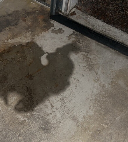 Vad kan det bero på? Kan det regna igenom porten på något vis som gör att det lägger sig just en pöl där varje gång?