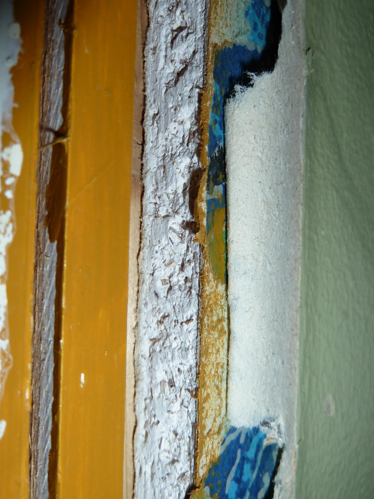 Dessa brandsäkra skivor på bild 1 och 2 innerhåller säkerligen asbest, av allt att döma i ytlager (mer eller mindre synligt med ögat), även möjligtvis i innerllager (själva gipset).