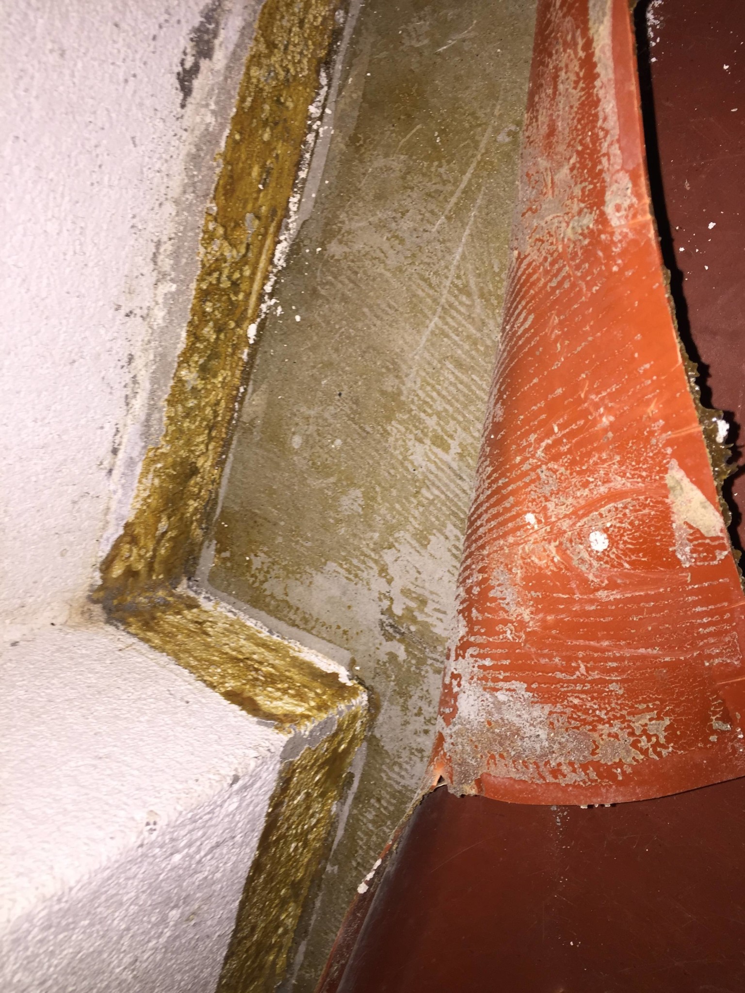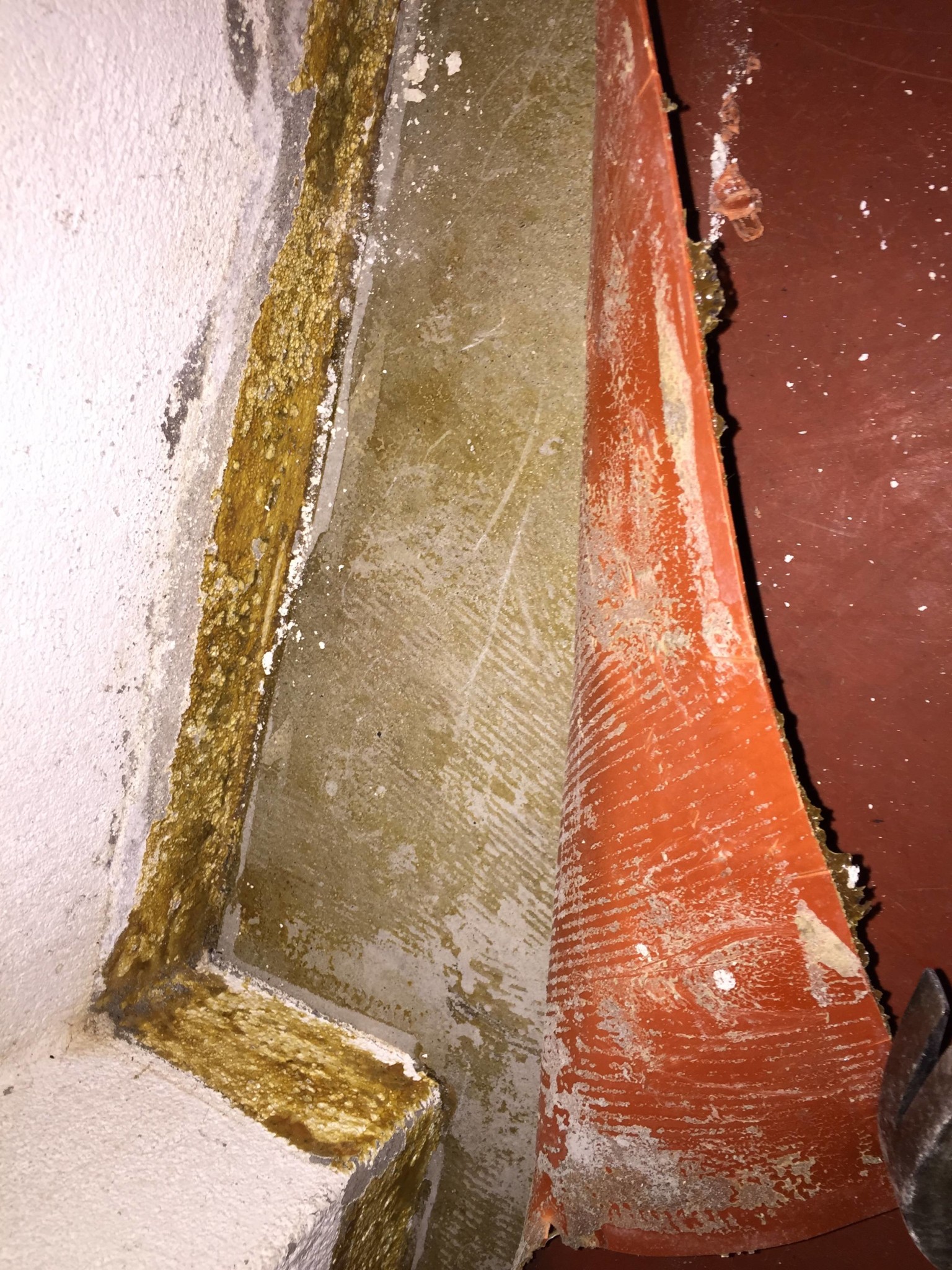 Lånar också tråden för en liknande fråga! Ska ta bort plastmatta i källaren (huset byggt 1970) som är limmat direkt på betongen. Har försökt leta bilder på hur ev. asbest-lim kan se ut men tycker det är svårt att hitta bra exempel. Vad tror ni om detta? Är inte så orolig för min del (får ta på mig munskydd och overall) men har en 10-månaders dotter i huset som jag förstås blir lite nojig över.