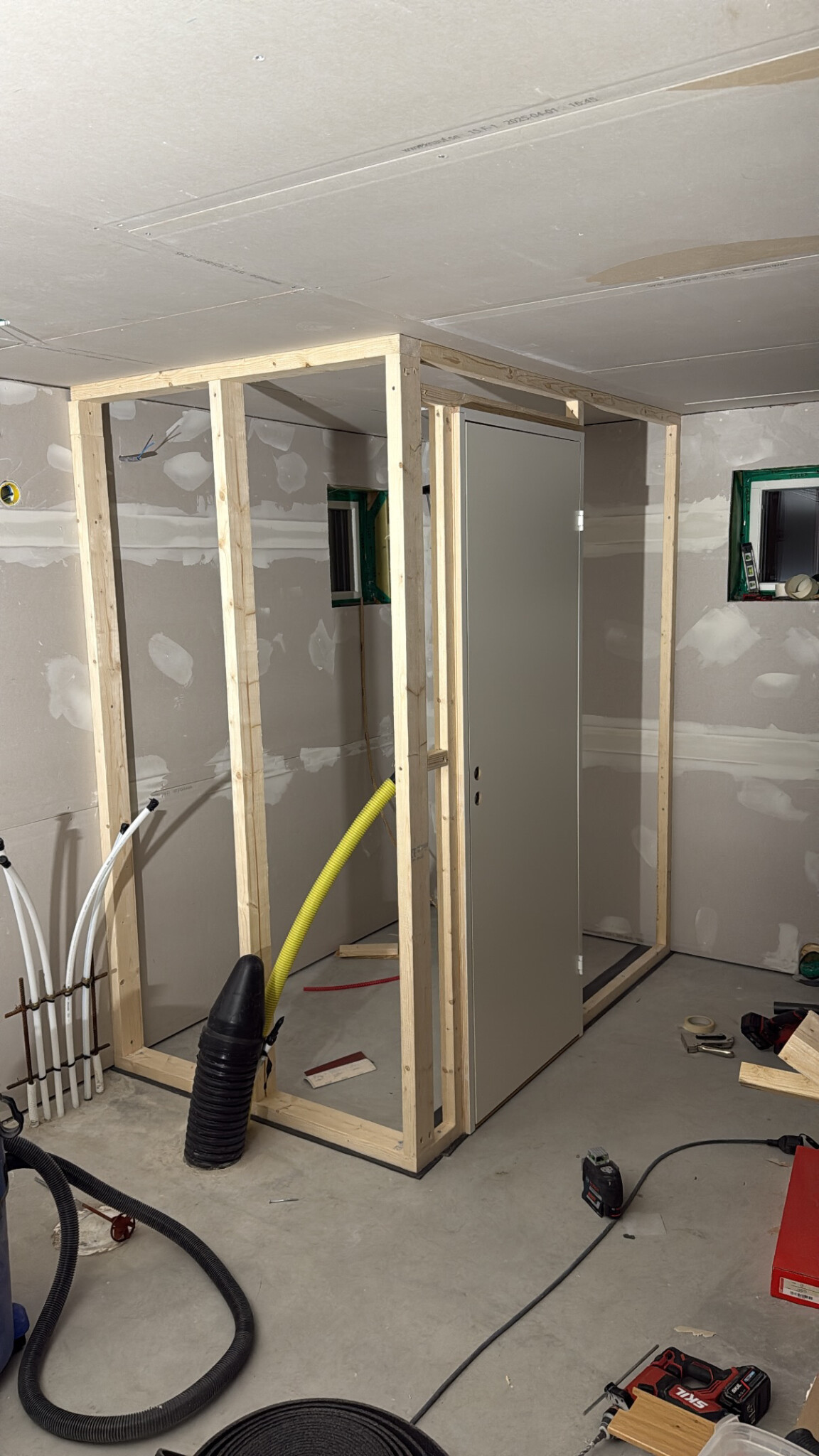 Nu gjorde jag en glipa, och jag tänker fortfarande sätta plastlist osv. Sen kanske det finns bra fuktavvisande färg man kan ha på väggarna nära portarna åtminstone.