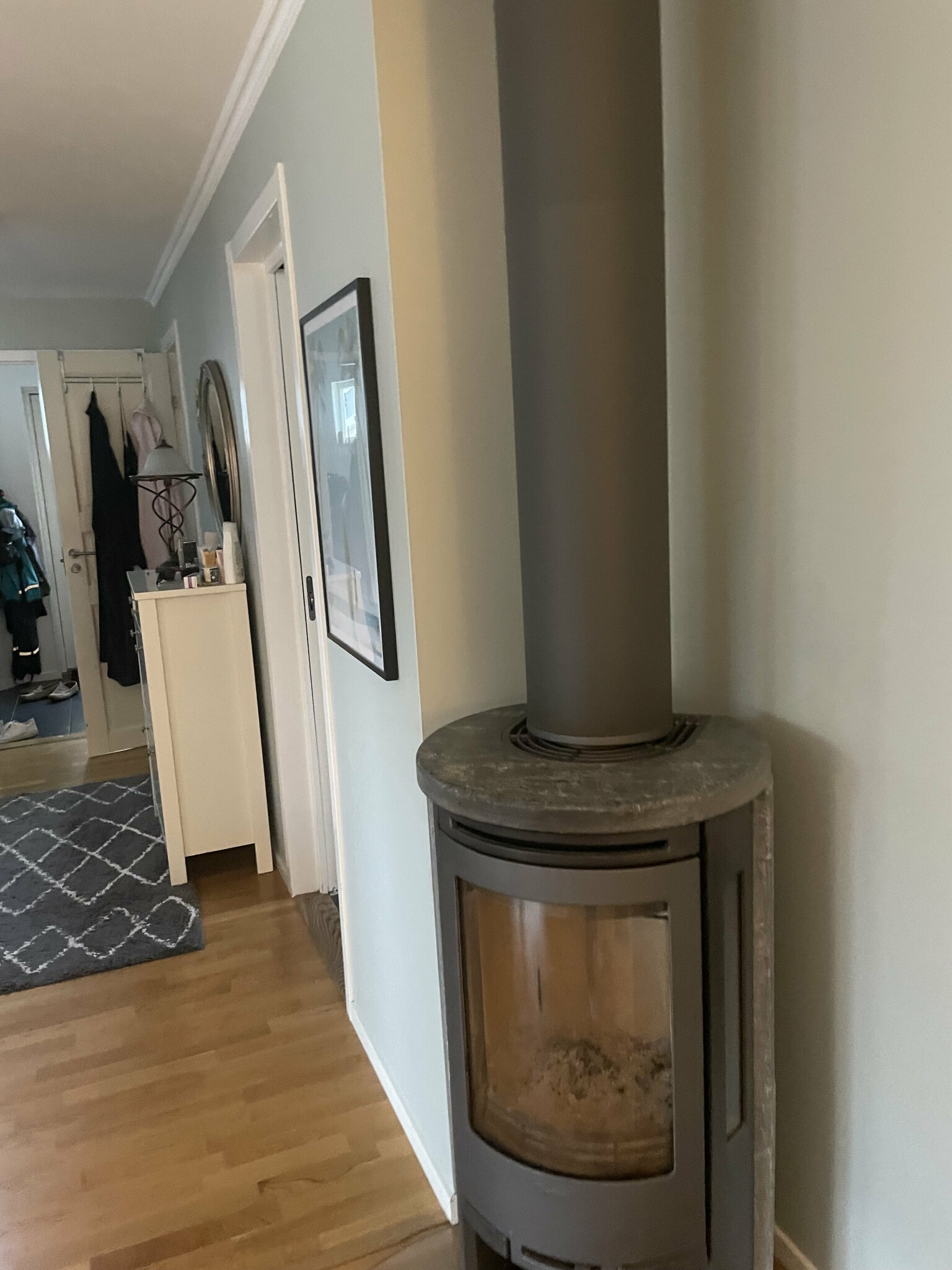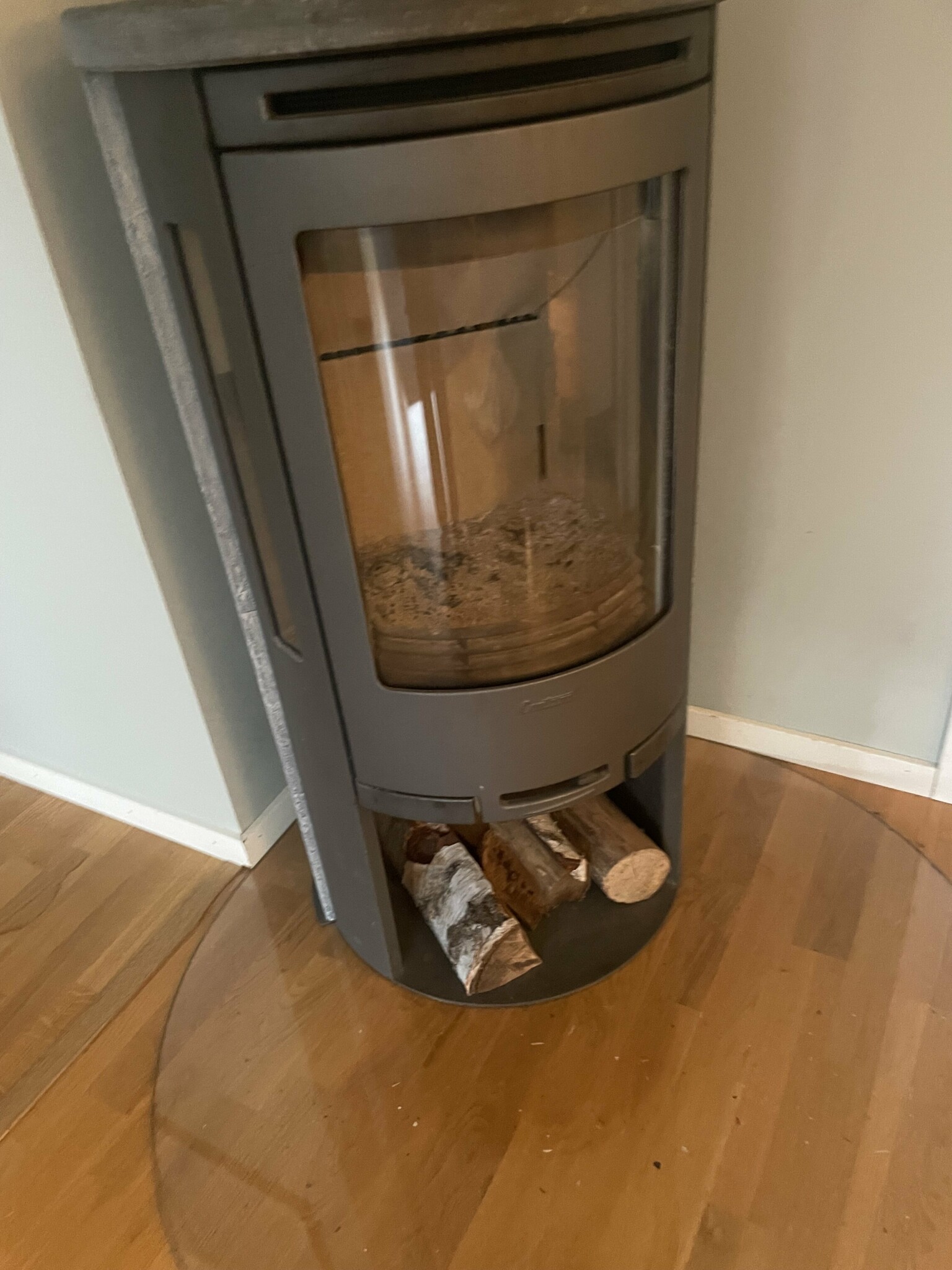 Vi funderade också på att måla. Alla som skriver att det bara är att lyfta upp kaminen är lite naiva. Klart det går men vår kamin och skorstensrör måste demonteras. Täljstenskamin som väger 250kg och ett skorstensrör som går i vinkel. Sen är tilluftsröret i golvet ett hinder men det går så klart knäcka glaset istället för att lyfta över det. Vår ide var att lägga en plåt över glaset men det var svårt att hitta en plåtslagare som kunde lösa det så vi funderar på att måla glaset tills vidare. Contura kom på sen att det här man att ställa kaminen på en stor glasskiva nog var en rätt dålig ide.