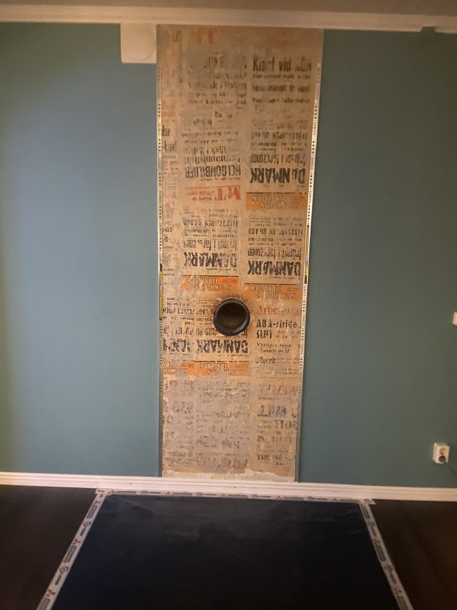 Vet inte hur jag ska göra. Meningen var att sätta kakel på väggen men när jag började ta bort tapeten på väggen så kom detta fram.