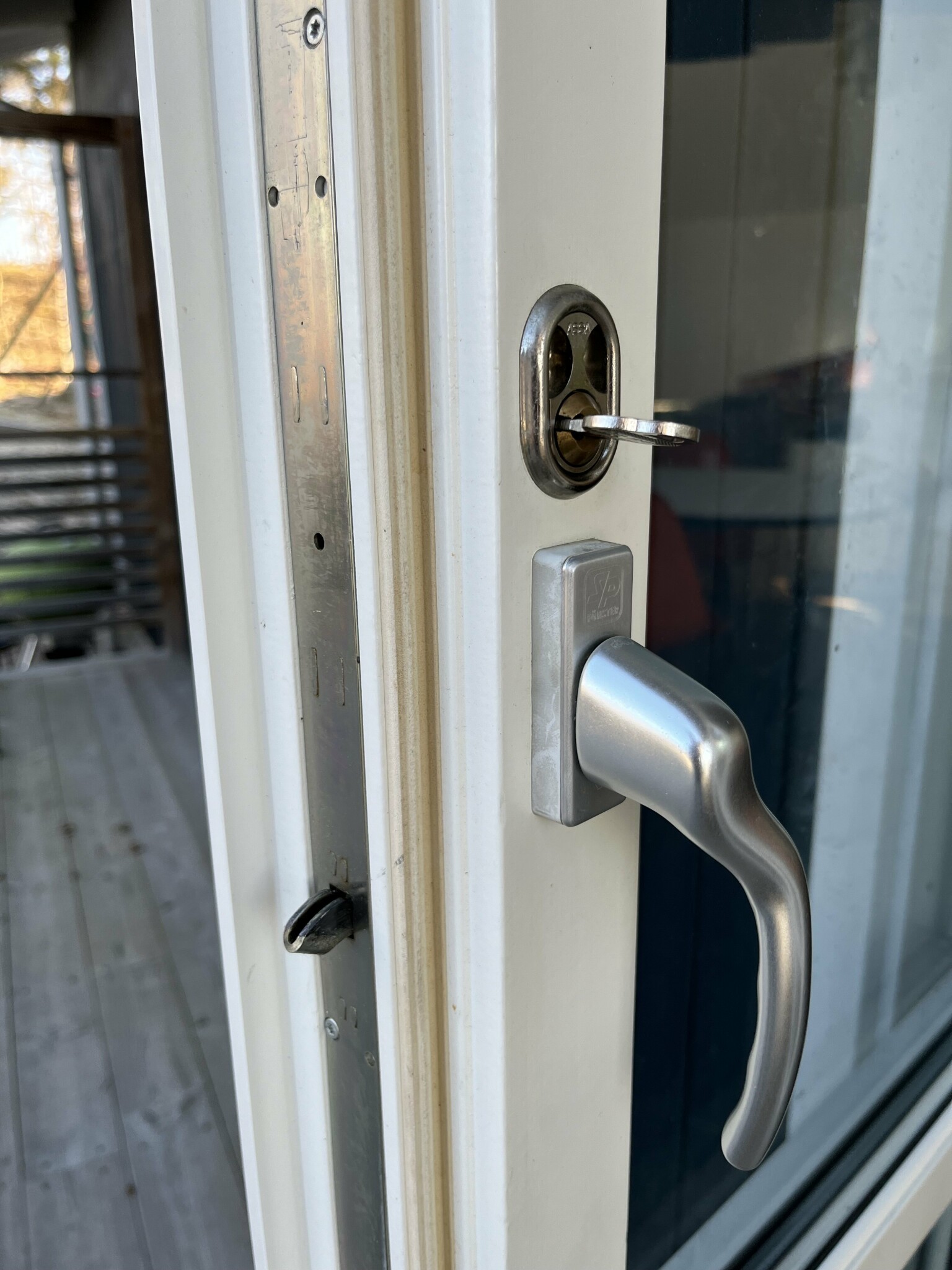 Låsningen av vår altandörr har börjat kärva. När man vrider nyckeln mot låst läge så tar det stopp. Både om dörren är stängd eller öppen.