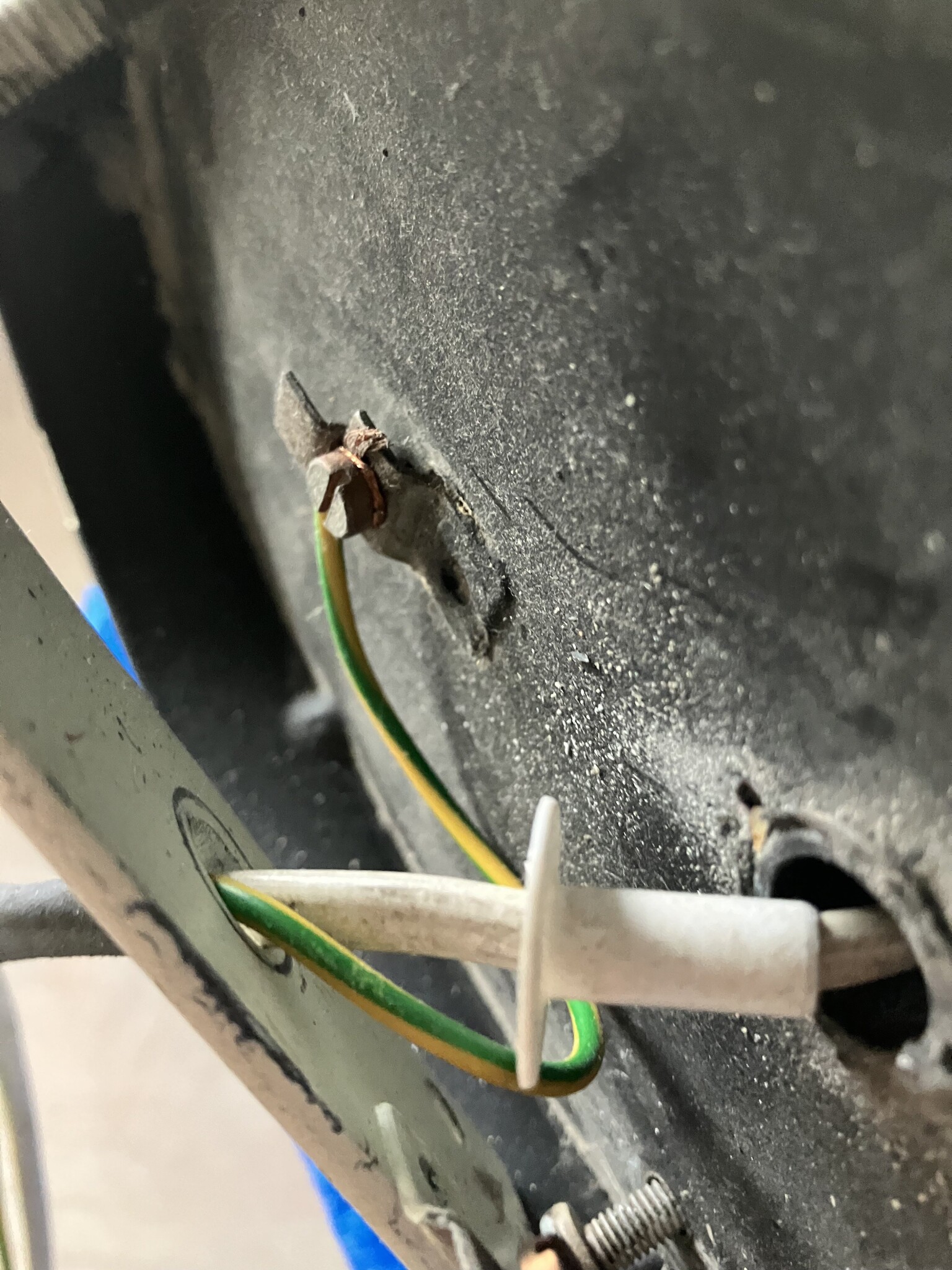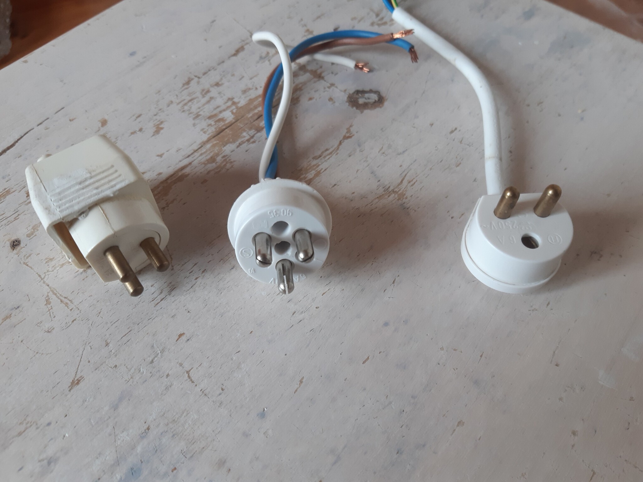 Det där är en gammal kronkontakt där hanproppen kan sättas hur som helst. Blir livsfarligt om jordtråden ansluts på hankontakten.