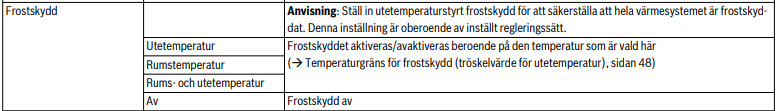 Kan väl bara flika in (efter att jag fått veta lite mer hur det fungerar) att maskinen har ett frostskydd som skall vara inställt på utetemperatur-styrt och i mitt system är det ställt på +6c vilket innebär att bara maskinen är igång så spelar det ingen roll om den står i sommarläge och inte jobbar så om temperaturen underskrider valt värde (+6c i mitt fall) så startar cirkulationspumpen automatisk och förhindrar frost.