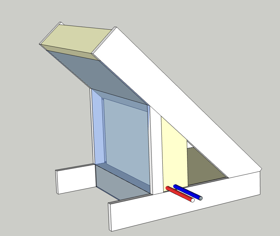 Här ligger ligger hela isolertjockleken utanför rören och kattvinden blir därför inte lika kall. Eftersom det inte ligger någon isolering i stödbenen så kommer också mer värme att komma ut där.