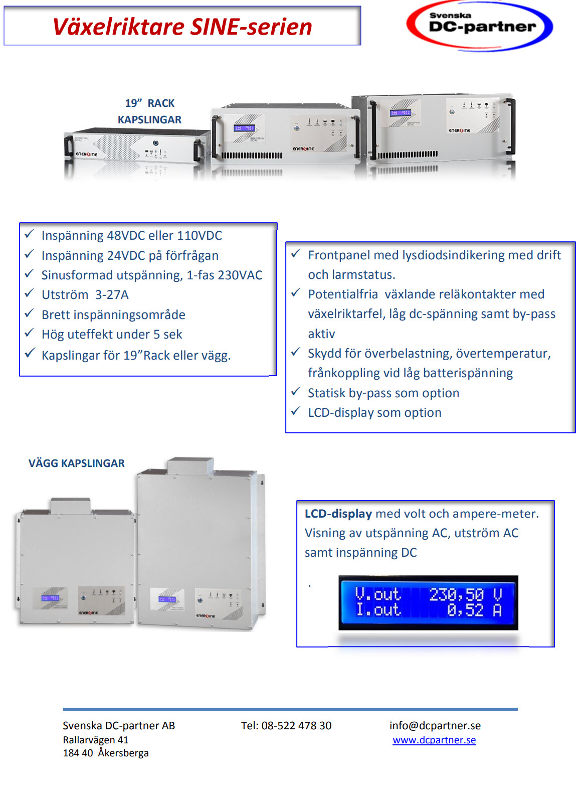 Vi har mellan 24 och 110VDC i våra anläggningar, och kör med denna typ av växelriktare för att erhålla 230VAC till diverse IT-utrustning, och kan på så sätt slippa att ha alltför många små UPS:er: