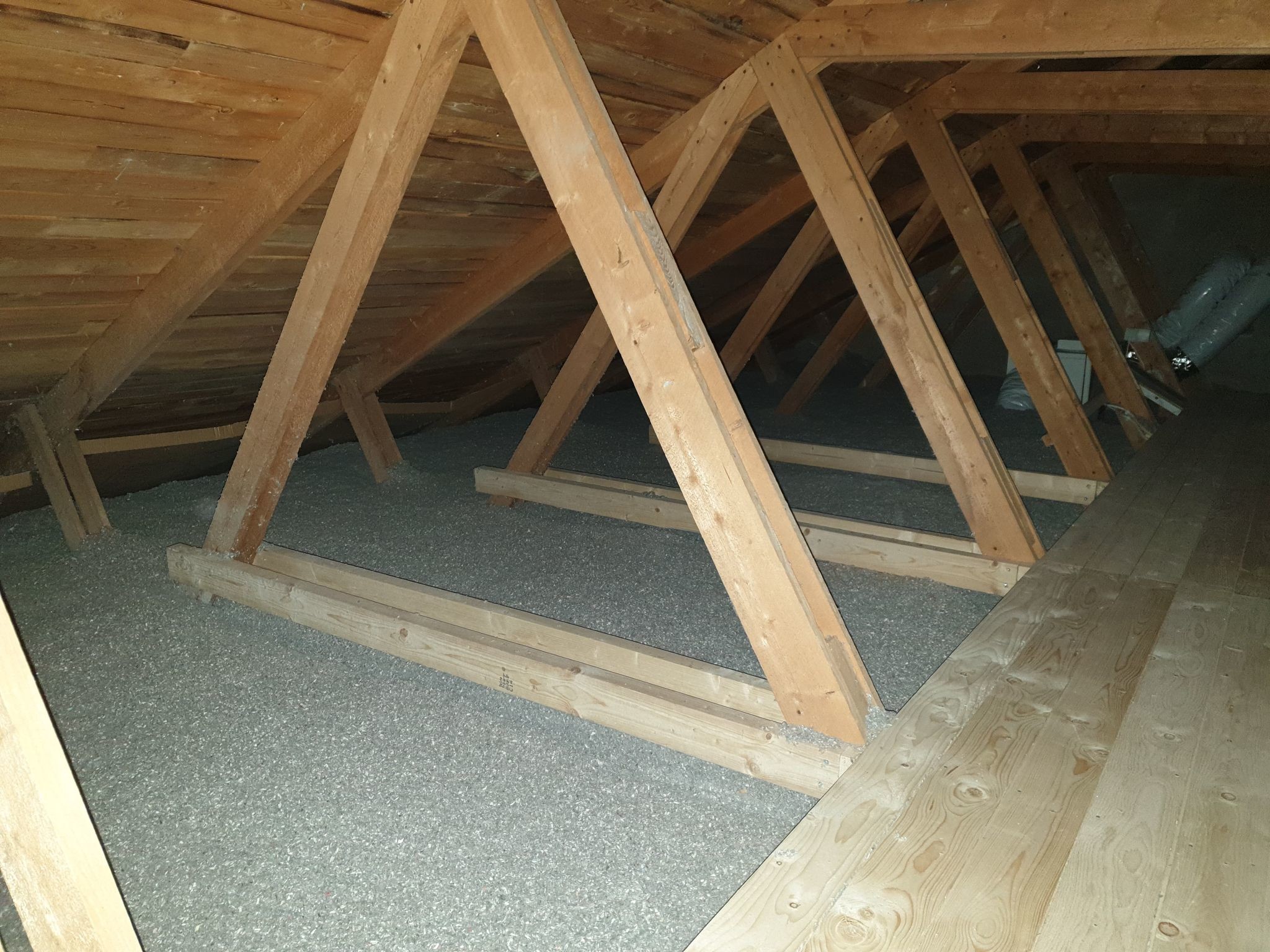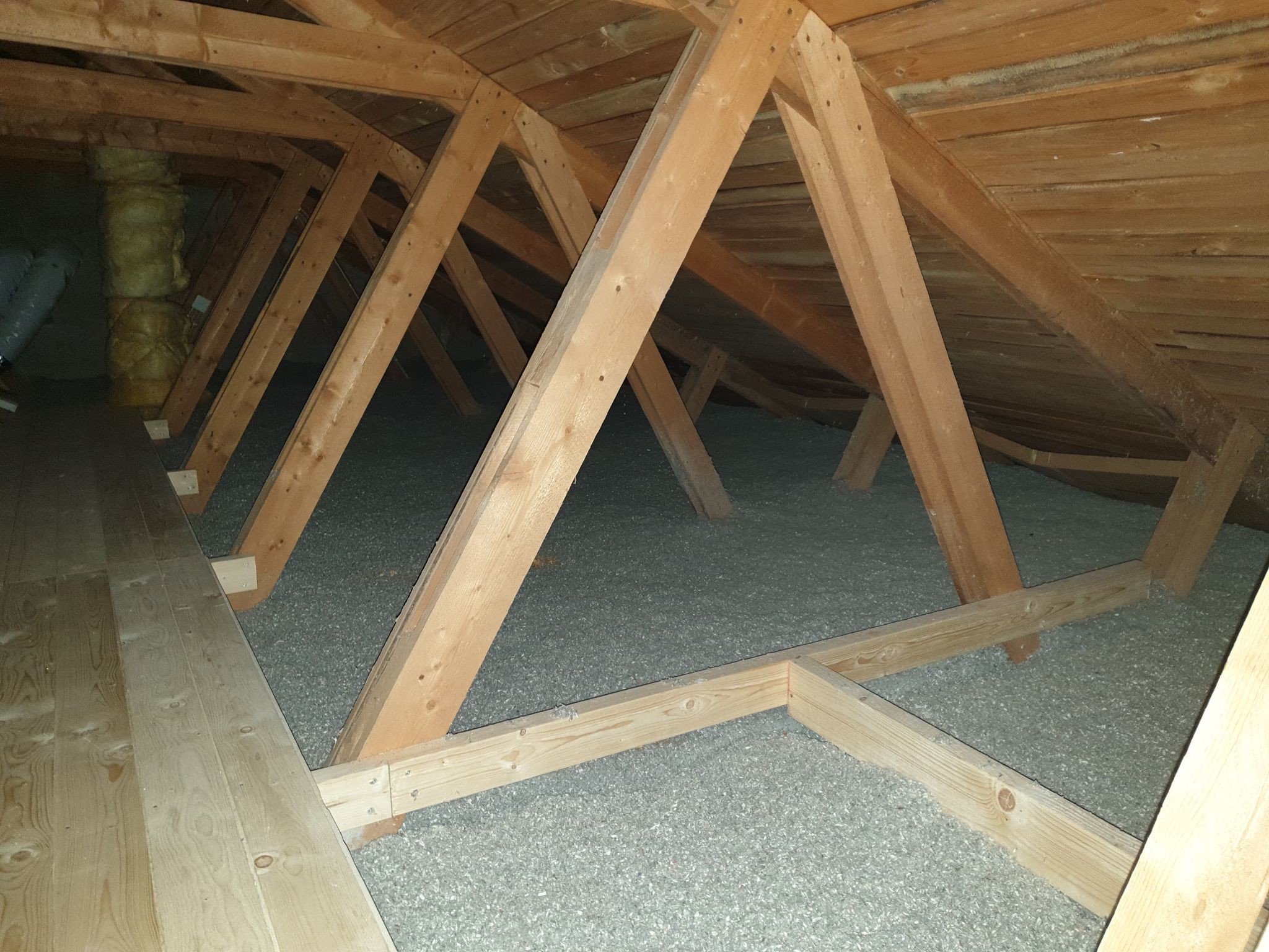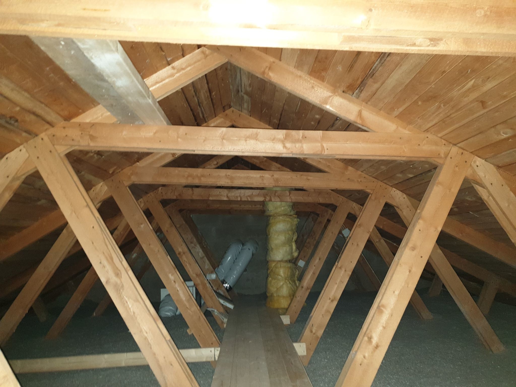 Bifogar lite bilder på hur det ser ut. Man ser några "färska" 45*120, dessa har jag skruvat dit för att fästa landgången i efter tilläggsisoleringen samt ska bygga "förvaringsyta" så det är inget som tillhör takstolen.