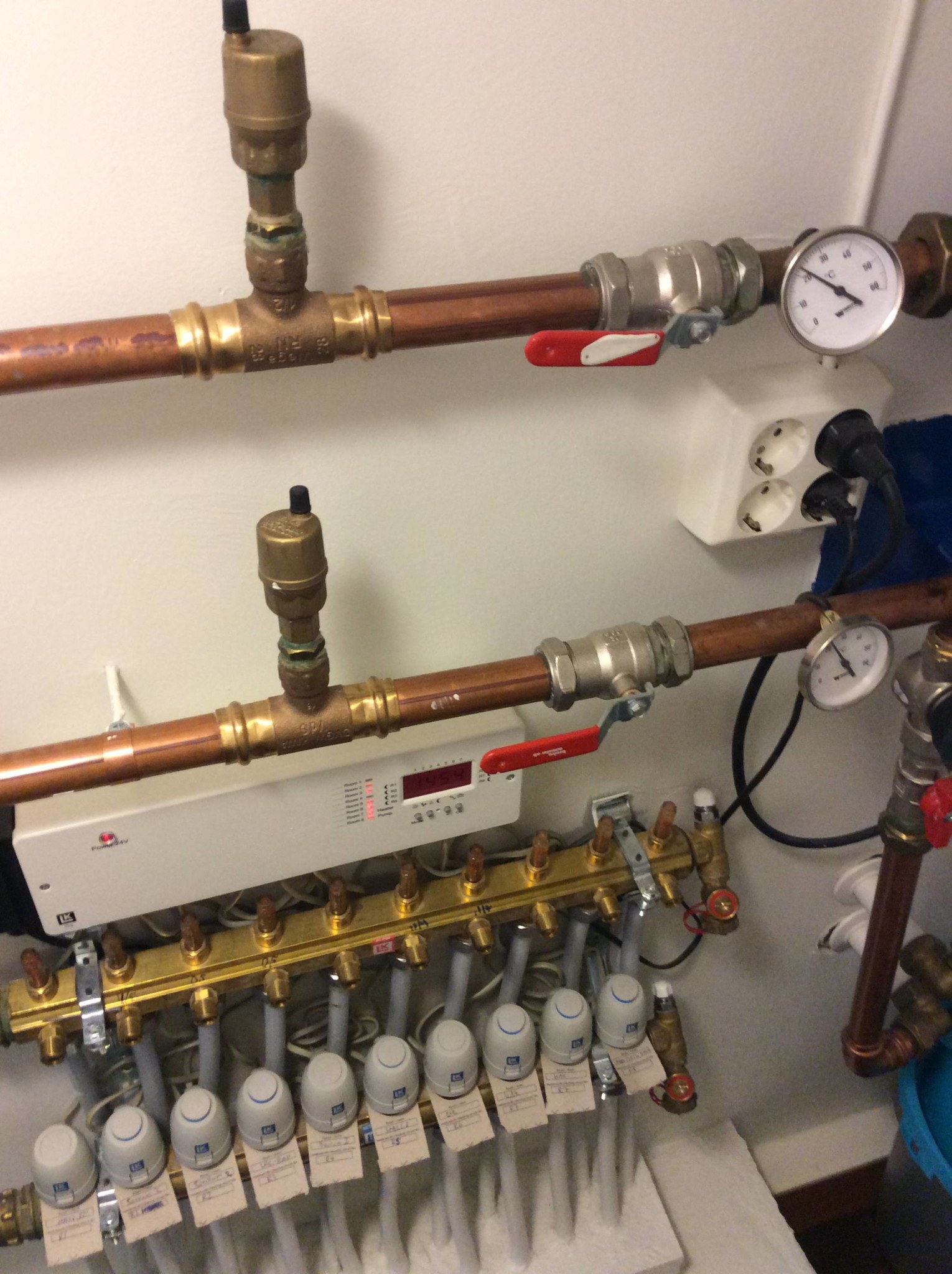 Ok. Vad är det du vill veta? CQ8 är bara själva rumsregulatorn. Någonstans i lägenheten sitter det en golvvärmefördelare som fördelar vattnet till respektive rum (brukar vara en slinga till varje.