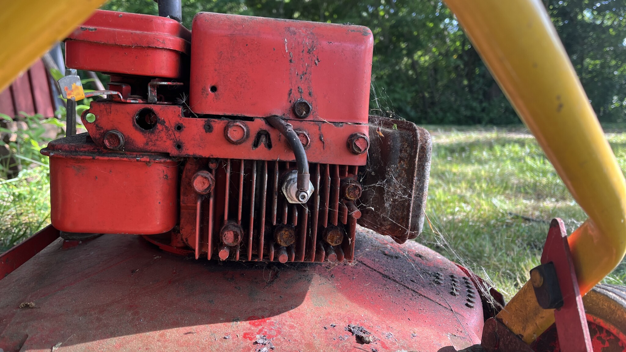 Förgasaren är en del av motorn, en Briggs&Stratton. Det ska finnas ett instansat nummer på kåpan. Med detta nummer kan du söka fram sprängskiss o vidare för delar alt hela förgasaren. Ofta finns delar för äldre Briggs men inte alltid o då är det beg alt hitta en tank/förgasare för annan motor som passar