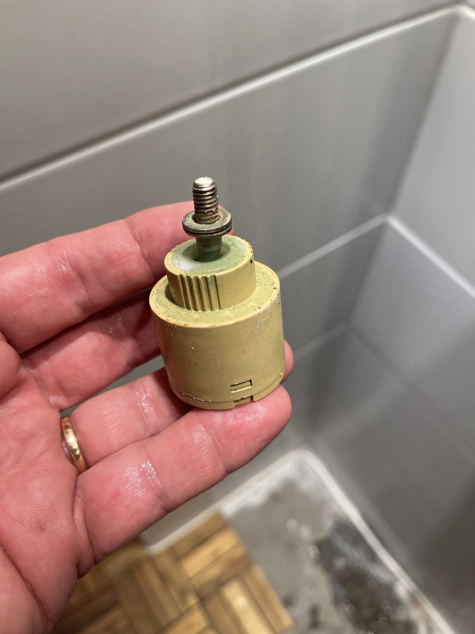 Jag behöver en ny blandare som den på bilden. Den styrs av en spak, varmt vänster, kallt höger och, ja.... Jag har tagit isär och lagat den en gång, men det saknas små plastbitar inuti så den läcker lite. Sitter i en tvättfatsarmatur som jag gärna vill behålla, men har inte hittat en ersättningsblandare nånstans. Nån som vet? Den är 35 mm i diameter, 27 mm till "första plan", 38 till det andra och 57 mm till toppen av gängskruven.