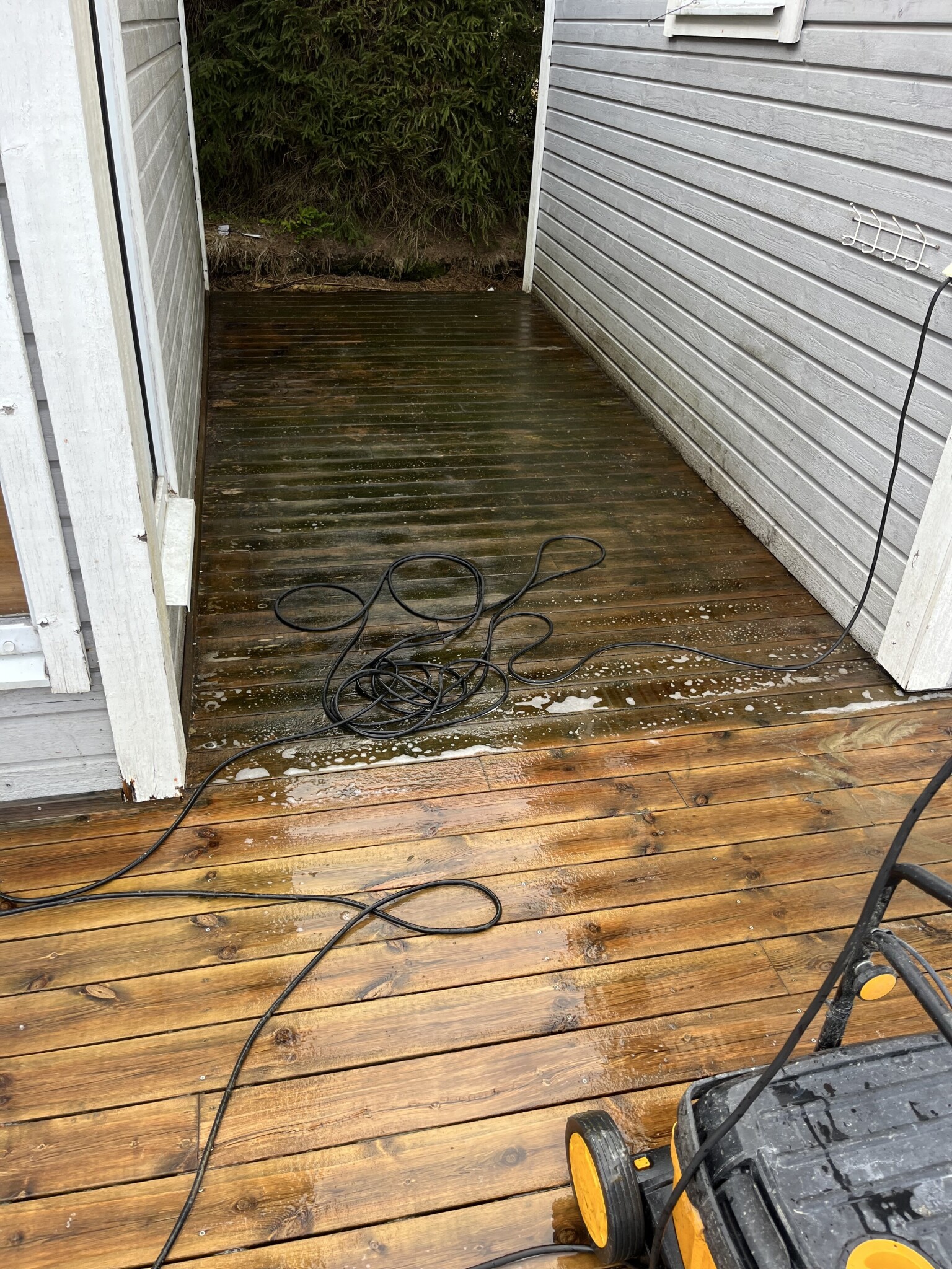 Lånade egentligen maskinen för att köra en +10 år helt bortglömd altan ute hos svärföräldrarna. Svart på sina ställen.