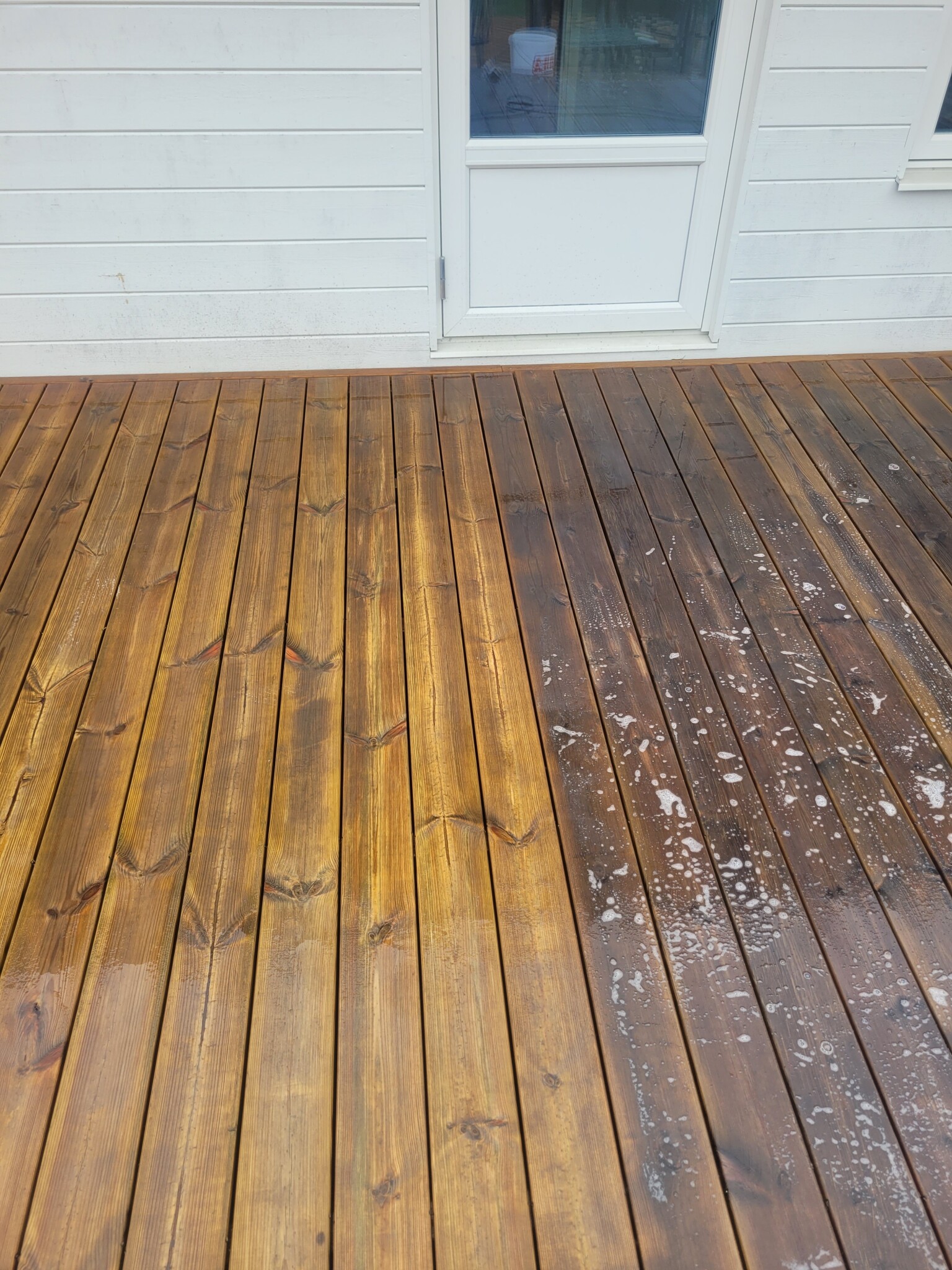 Trodde det trädäcket var förlorat. Men satan i gatan om inte skurmaskinen fick bort det extremt slitna ytskiktet och gav en helt ny lyster till hela däcket. Extremt imponerad av maskinen.