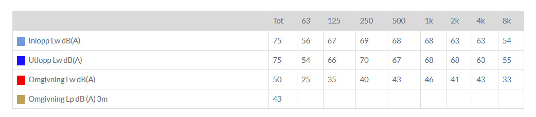 Men jag har svårt att jämföra siffrorna, har satt båda till 60l/s och 200pa tryck: