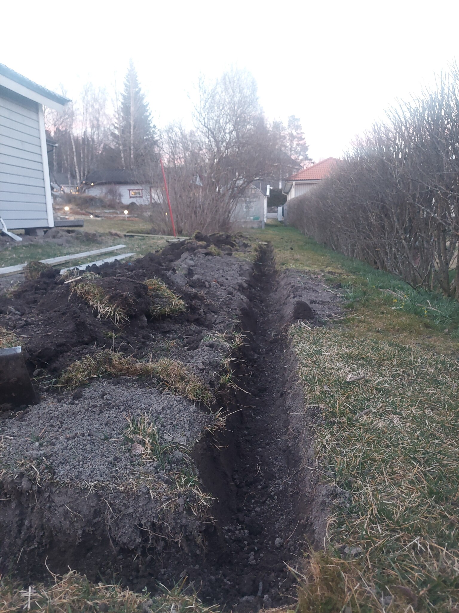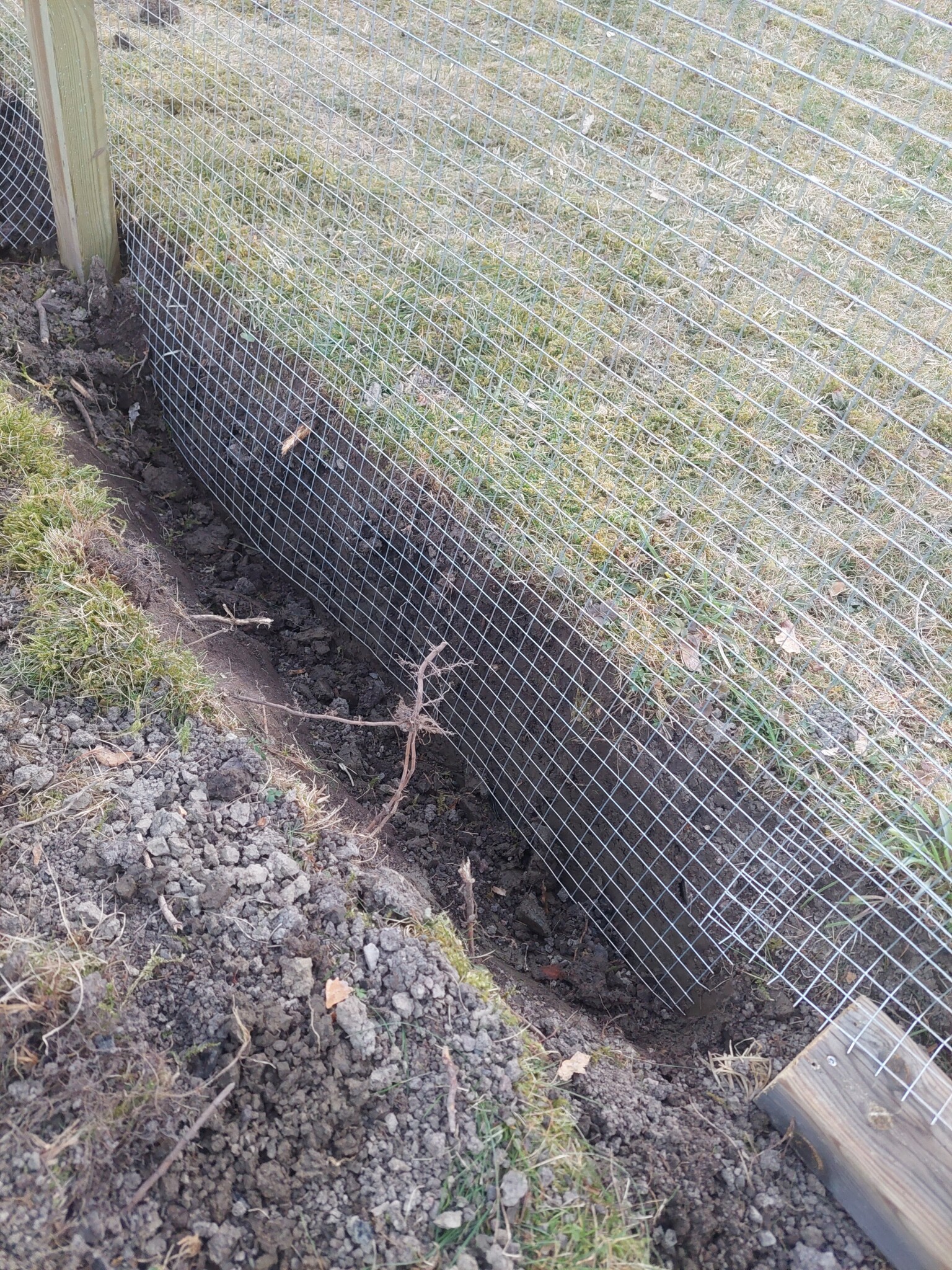 Jag har grävt ur ca 25cm runt om där stolpar och nät ska ner. Kommer köra biltemas putsnät på nedre delen.