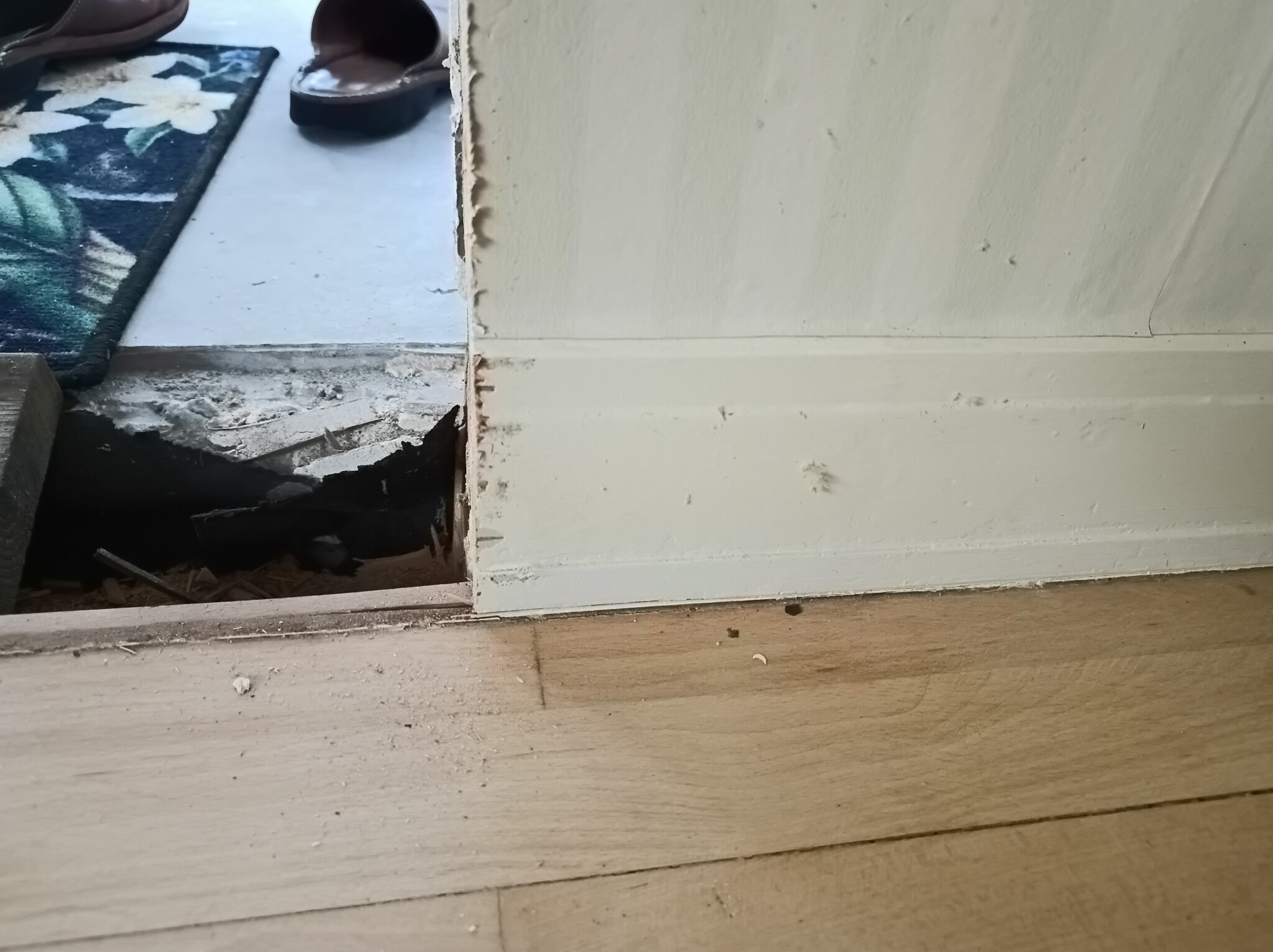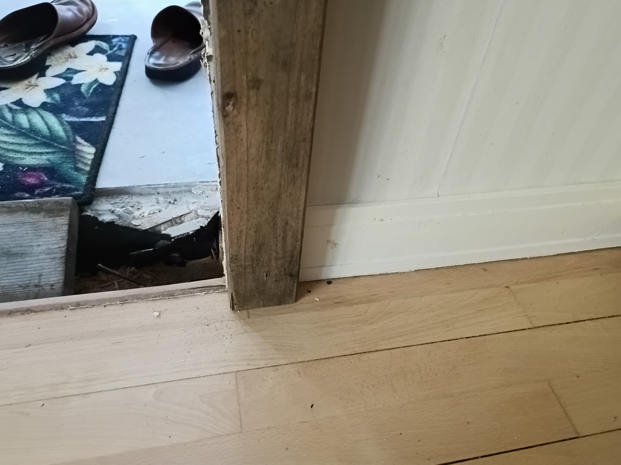 Det blev en ny dörr. Kapade rakt igenom vägg och list. Sedan, när man skall sätta dit foder, hur kapar man till den befintliga golvlisten så det blir snyggt. Vill helst inte ta loss den, bända ut den lite kanske kan gå.