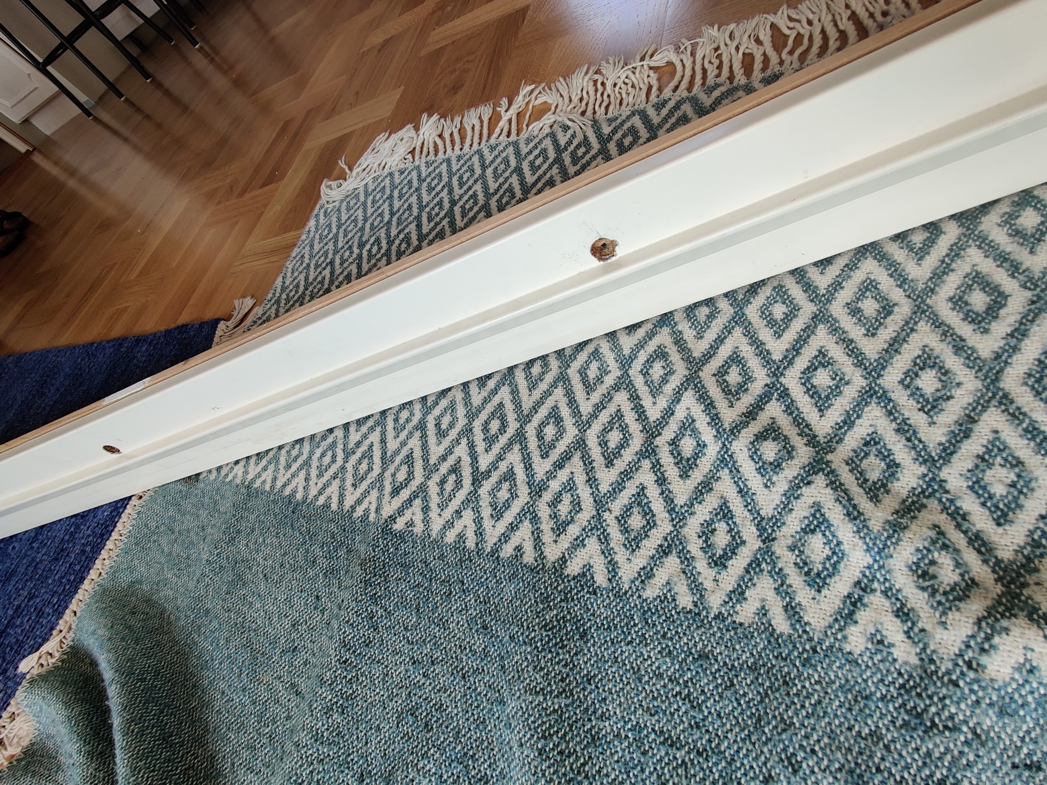 Hålet i väggen passar perfekt men regeln på ena sidan är 45x70 som är vänd åt fel, dvs 45mm att skruva i vilket gör att precis där jag ska sätta karmskruven är det en glipa på typ 25mm innan nästa regel.